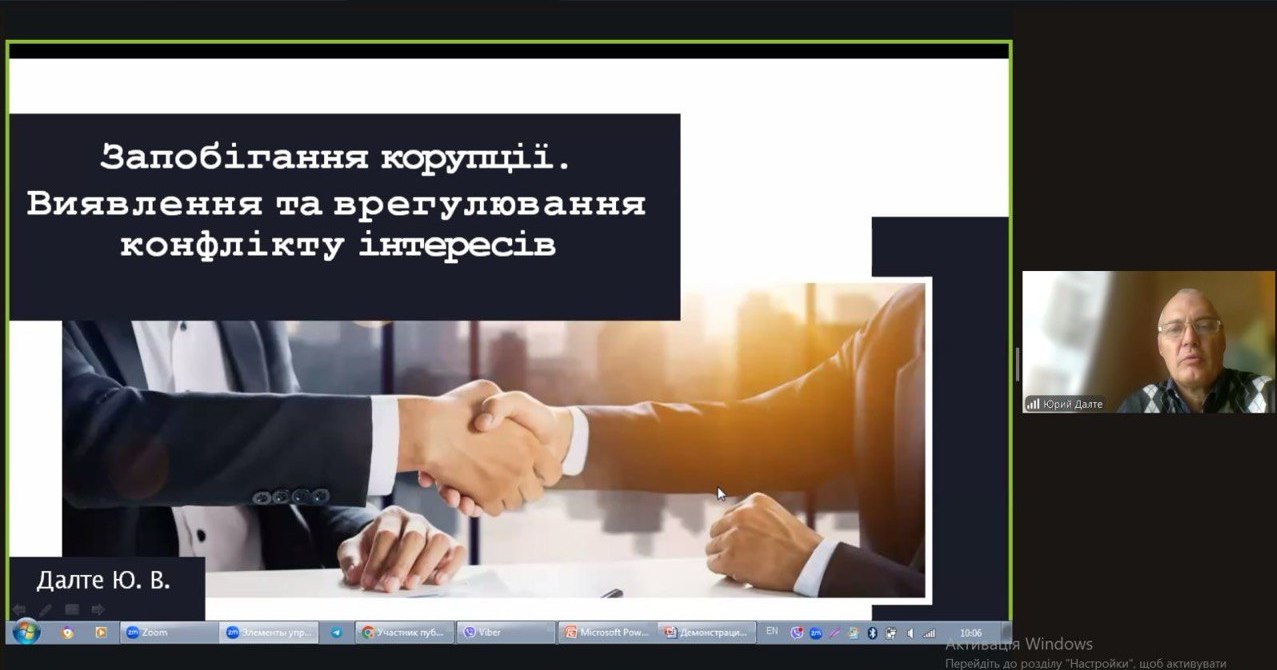 1 жовтня за ініціативи кафедри фінансів, банківської справи та страхування та Уповноваженого з питань запобігання та виявлення корупції НАСОА – д.ю.н., професора Петра Корнієнка, відбулася онлайн лекція-тренінг «Запобігання корупції. Виявлення та врегулювання конфлікту інтересів».