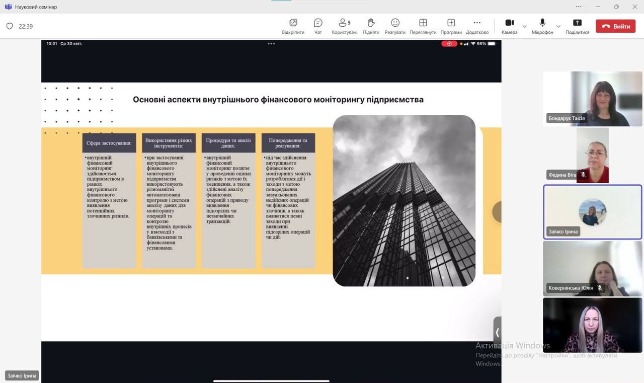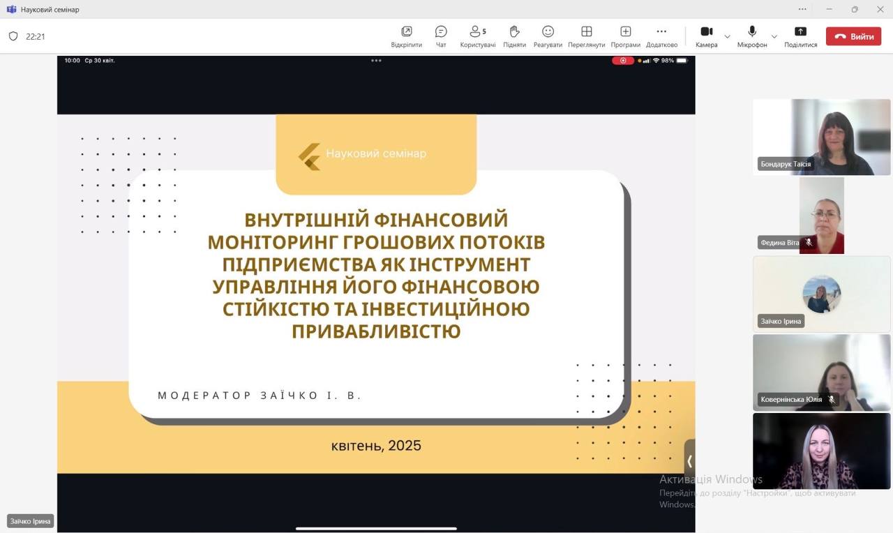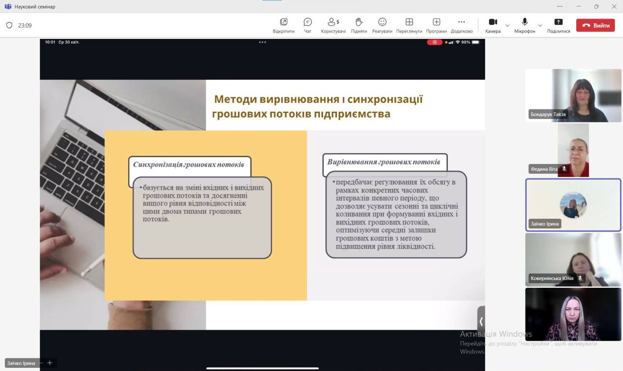 Учасники семінару обговорили актуальні питання ефективного управління грошовими потоками підприємств в умовах підвищеної економічної нестабільності. Особливу увагу було приділено інструментам оцінки фінансової стійкості, підходам до виявлення внутрішніх ризиків та методам підтримки інвестиційної привабливості суб’єктів господарювання.