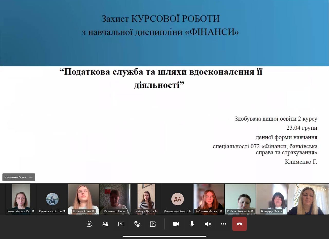 Захист курсових робіт з навчальної дисципліни «Фінанси»
