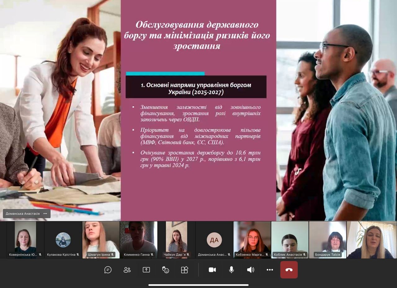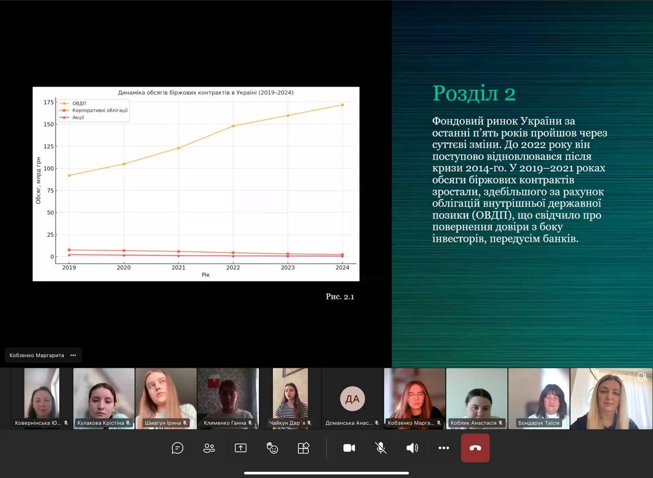 До складу комісії увійшли викладачі кафедри: д.е.н., проф. Т. Г. Бондарук, к.е.н., доц. І. В. Заїчко, к.е.н., доц. Ю. В. Ковернінська. У процесі захисту здобувачі продемонстрували належний рівень теоретичної підготовки, аналітичні здібності та вміння застосовувати отримані знання для розв’язання практичних завдань. У представлених роботах було порушено низку актуальних питань фінансової науки, зокрема у сфері публічних і приватних фінансів, а також функціонування фінансових ринків. Члени комісії відзначили актуальність досліджень, структурованість і змістовність робіт, а також здатність здобувачів аргументовано відстоювати власну позицію.