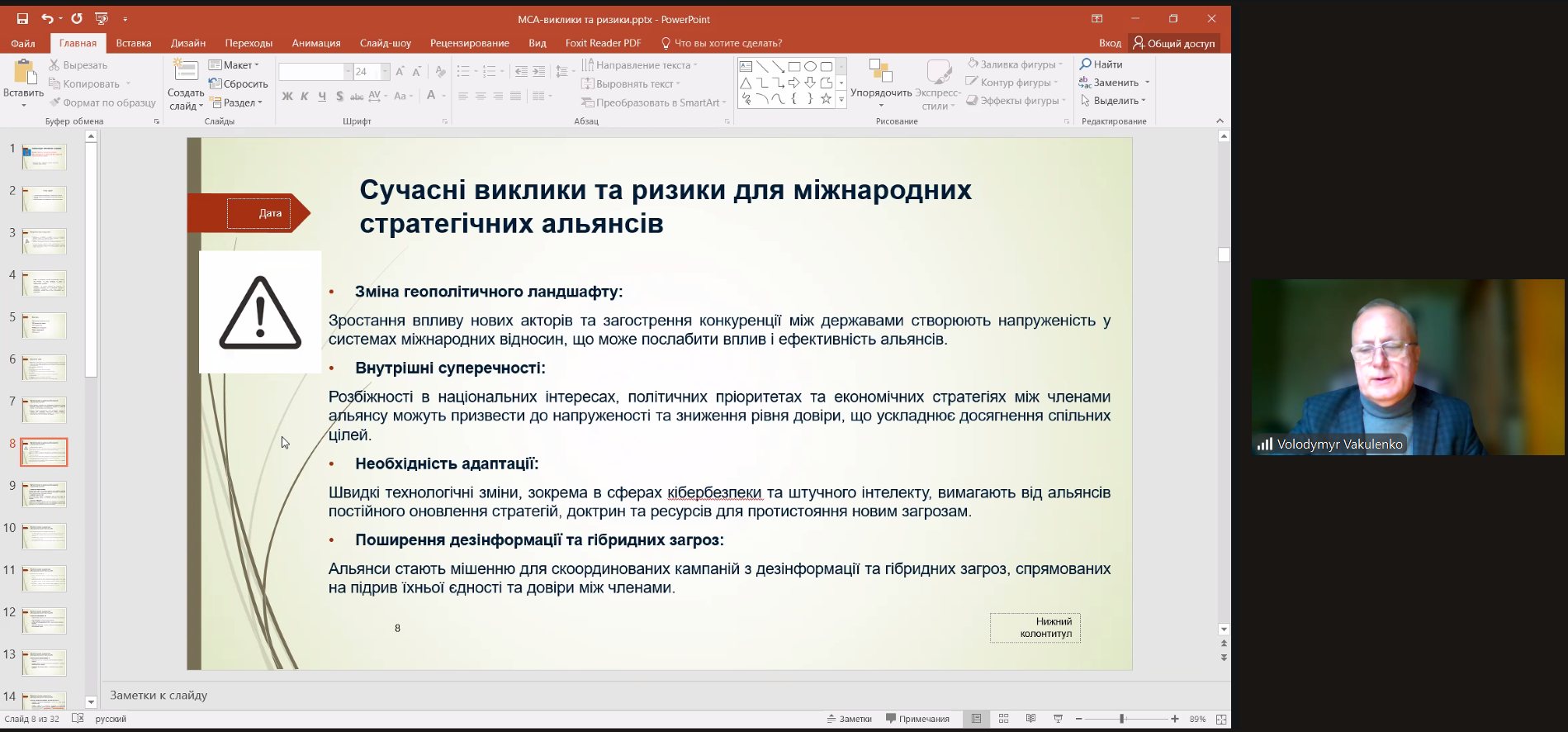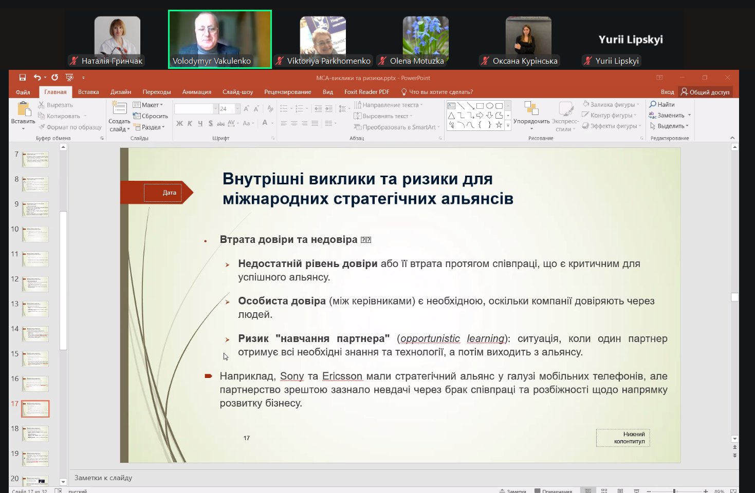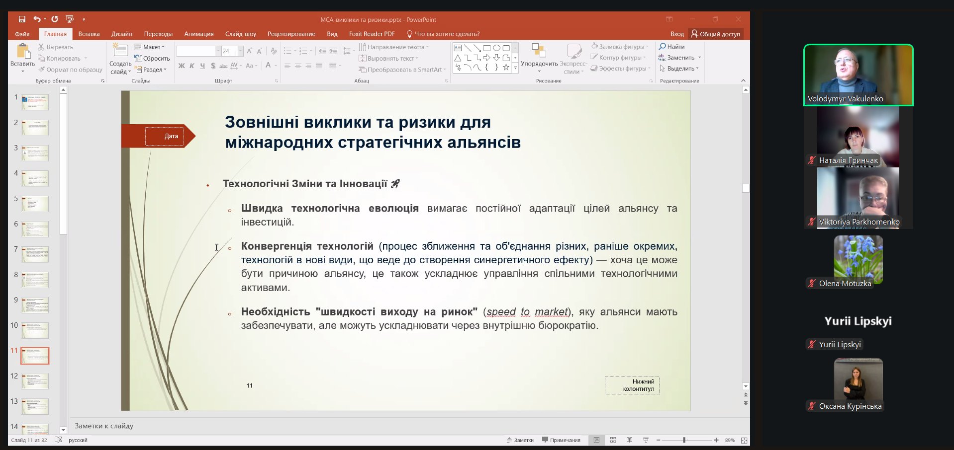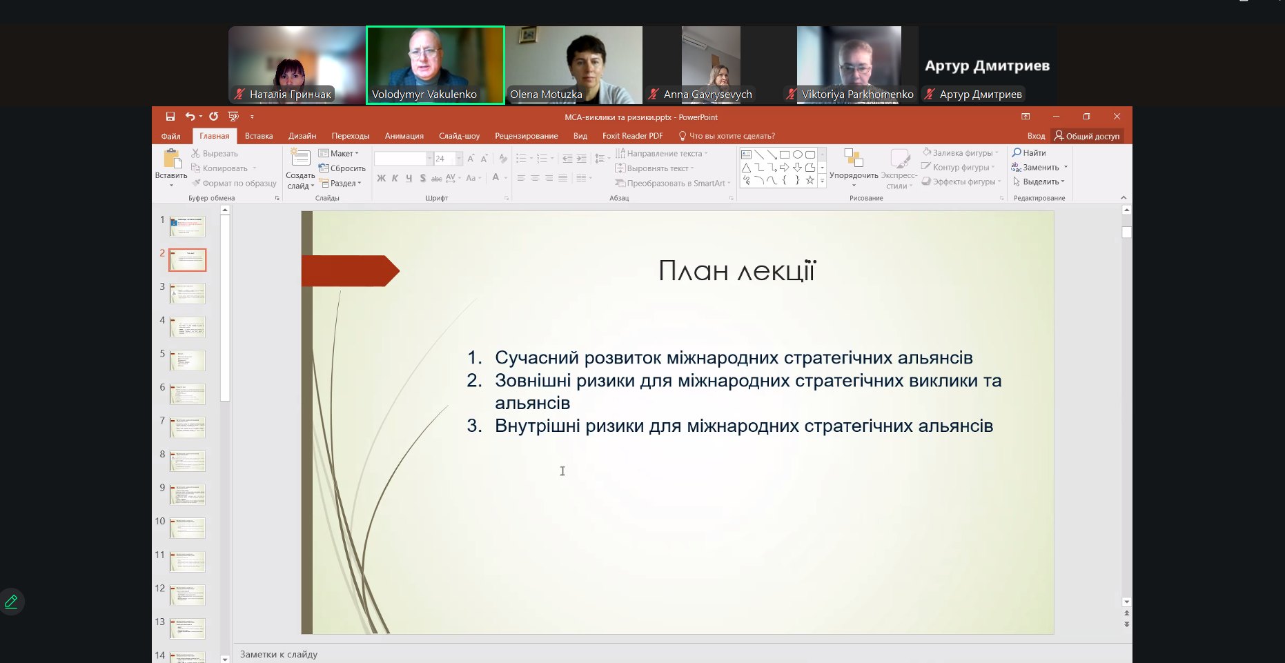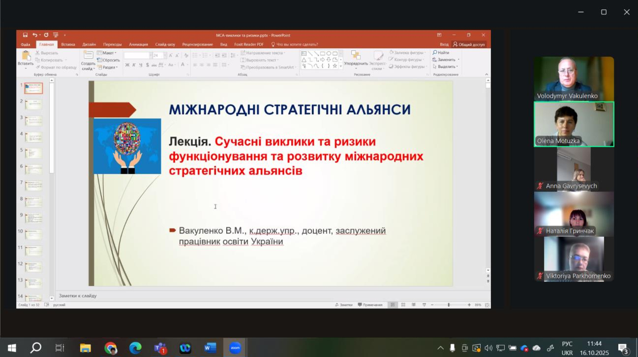 16 жовтня 2025 року об 11:40 відбулася відкрита лекція на тему: «Сучасні виклики та ризики функціонування та розвитку міжнародних стратегічних альянсів».