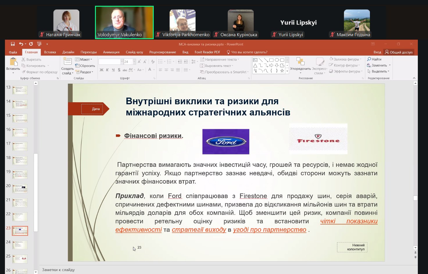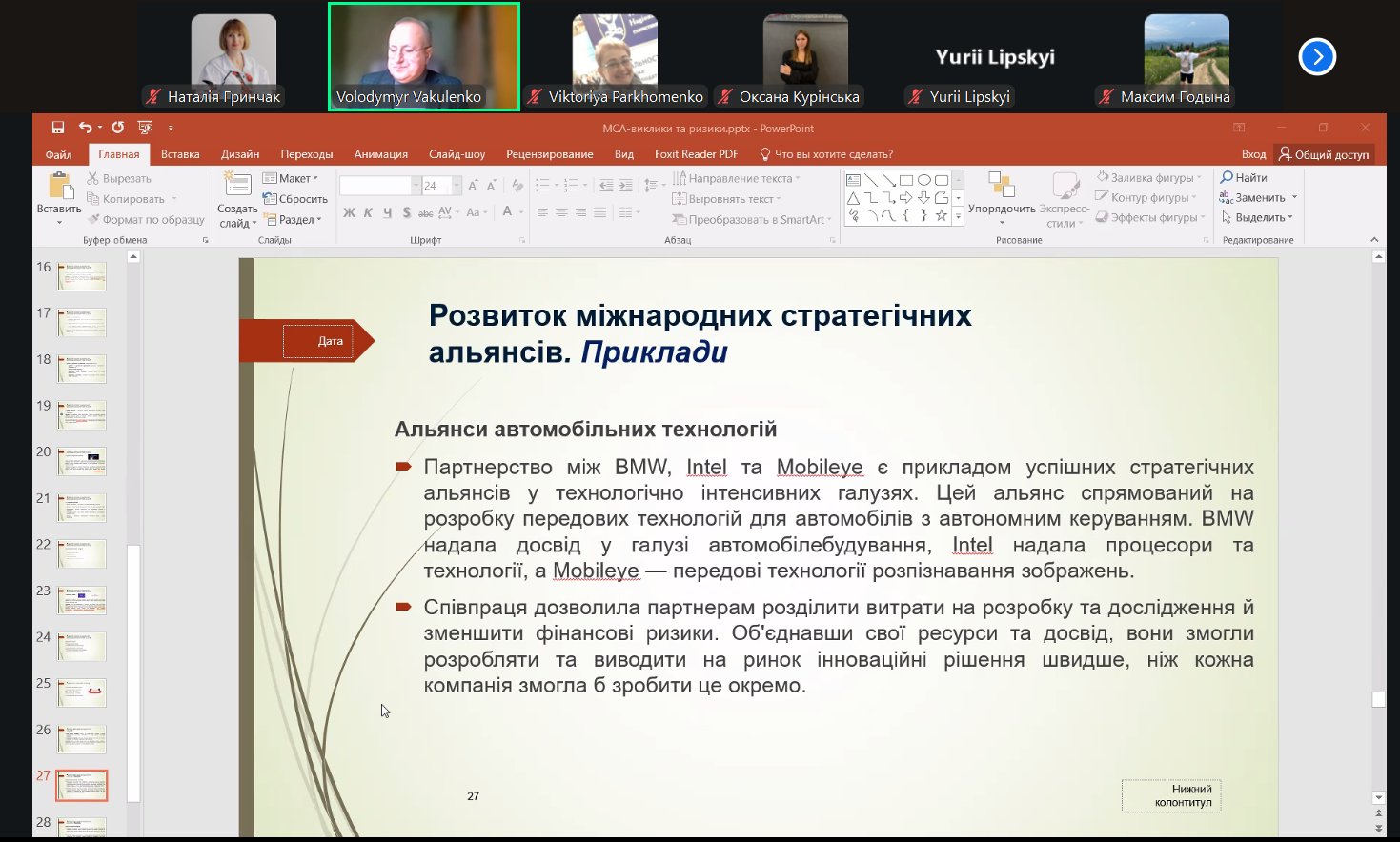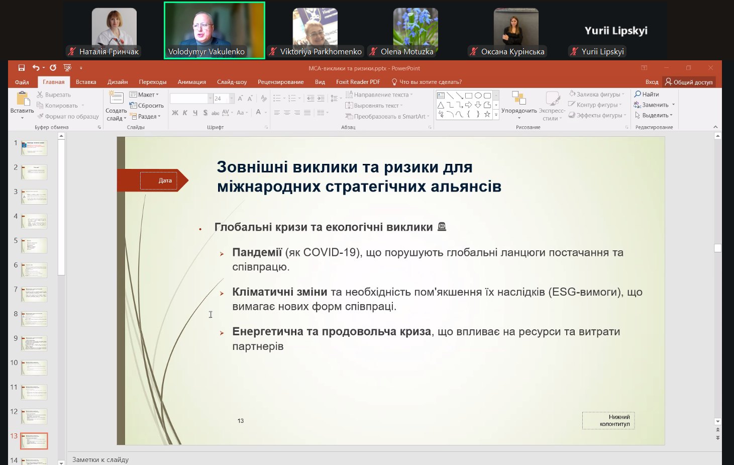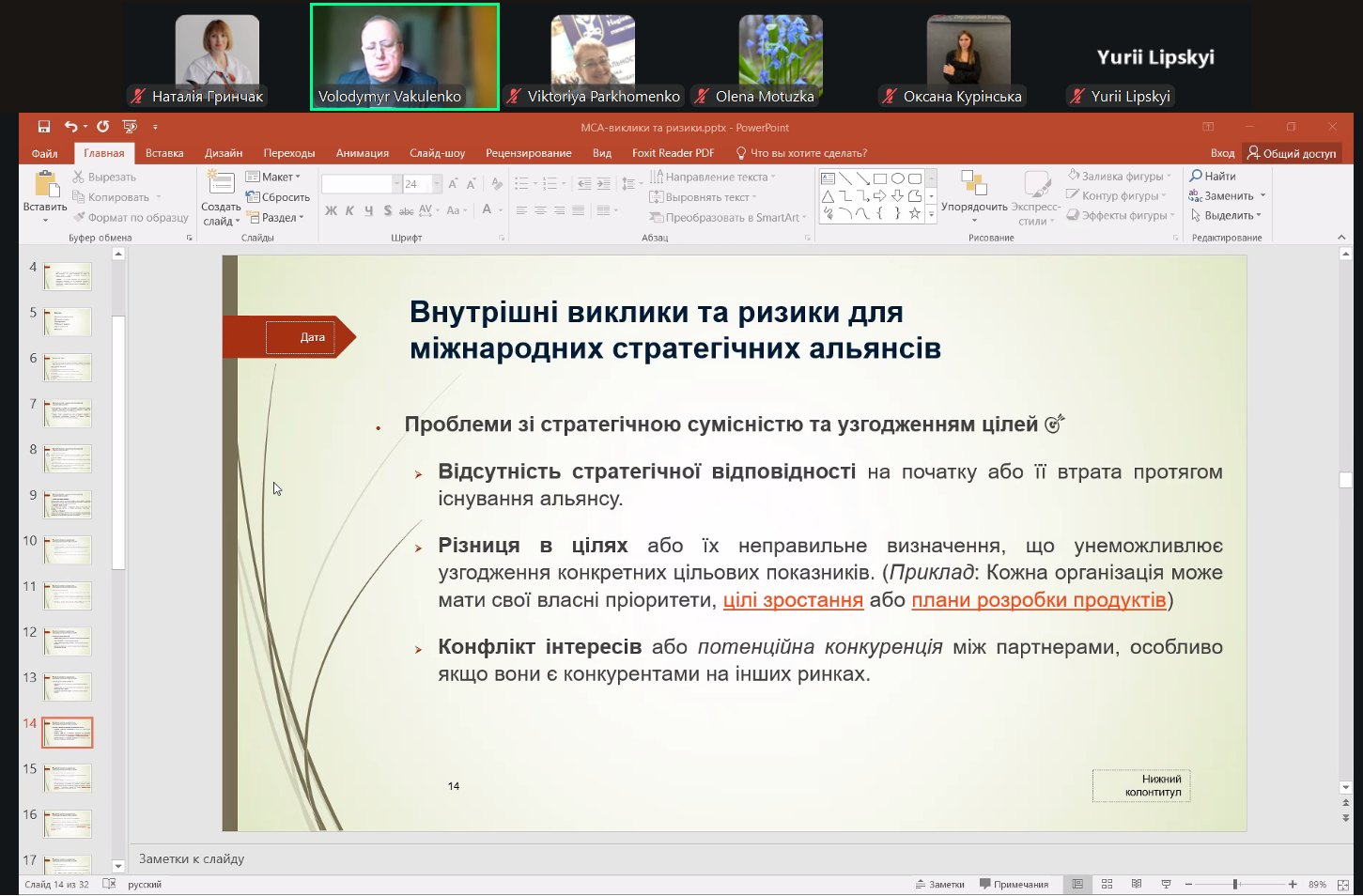 16 жовтня 2025 року об 11:40 відбулася відкрита лекція на тему: «Сучасні виклики та ризики функціонування та розвитку міжнародних стратегічних альянсів».