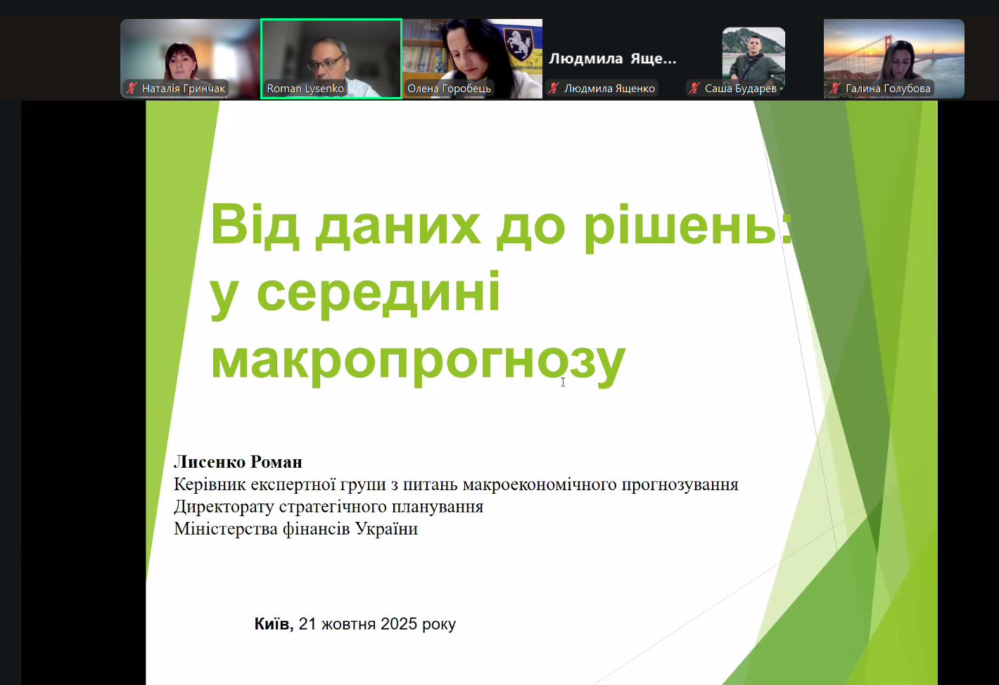 Спікером воркшопу виступив Роман Станіславович Лисенко, к.е.н., керівник експертної групи з макроекономічного прогнозування Директорату стратегічного планування Міністерства фінансів України.