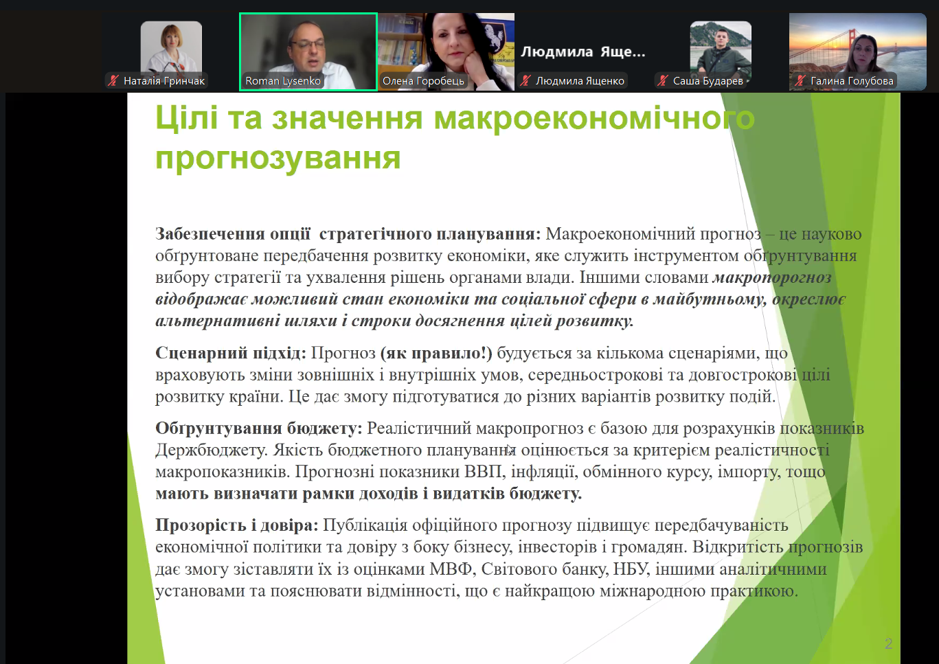 Учасники мали змогу глибше ознайомитися з такими аспектами макропрогнозування: