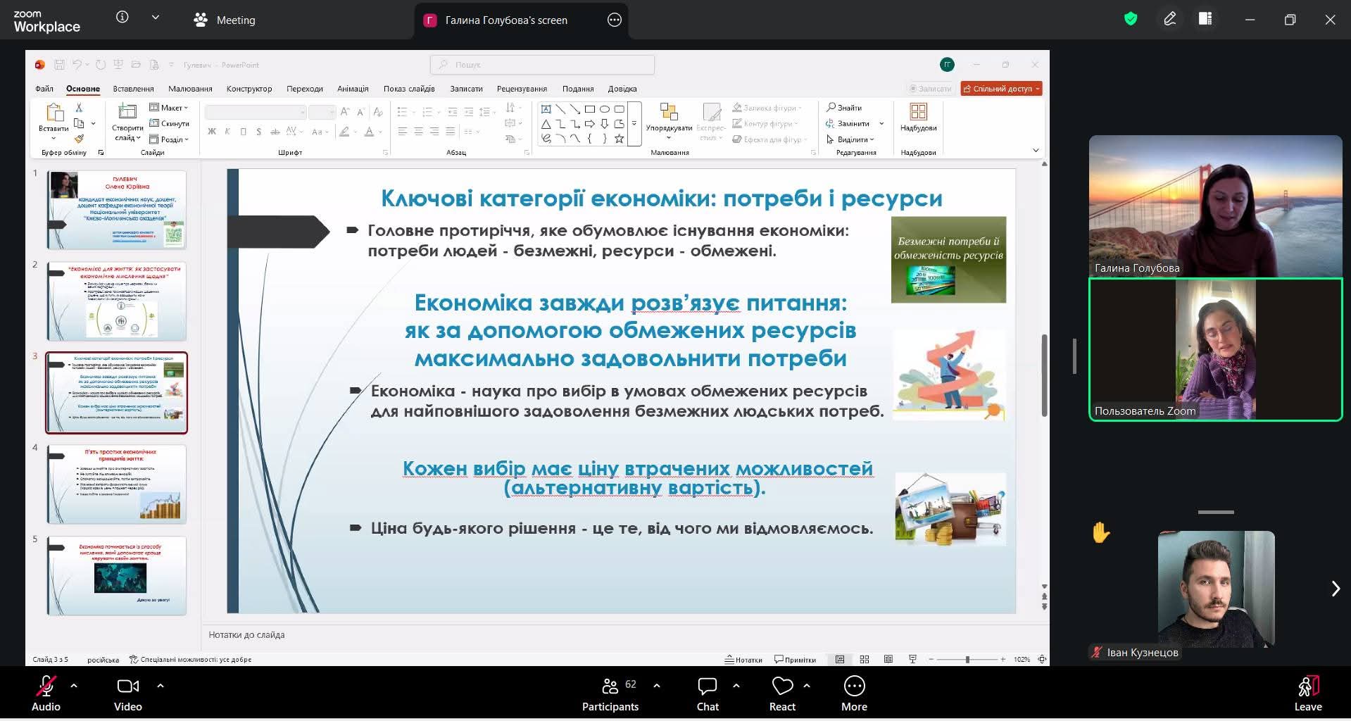Доповідач окремо акцентувала увагу на економічному терміні “альтернативна вартість”, пояснивши її формування, цінність та позиціонування в нашому житті.