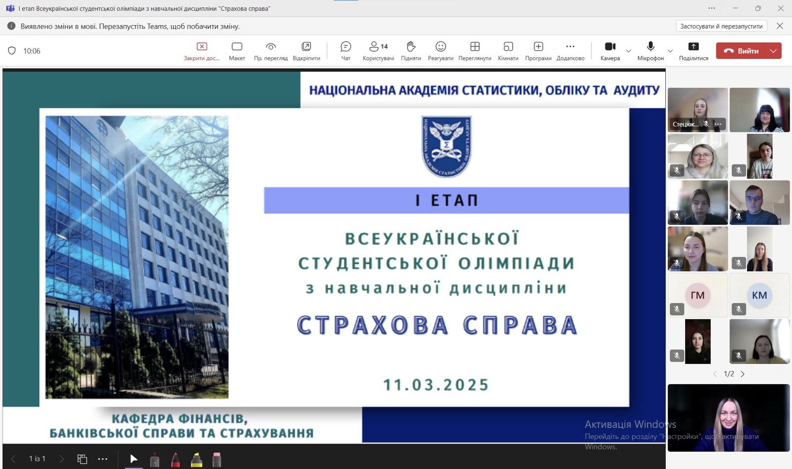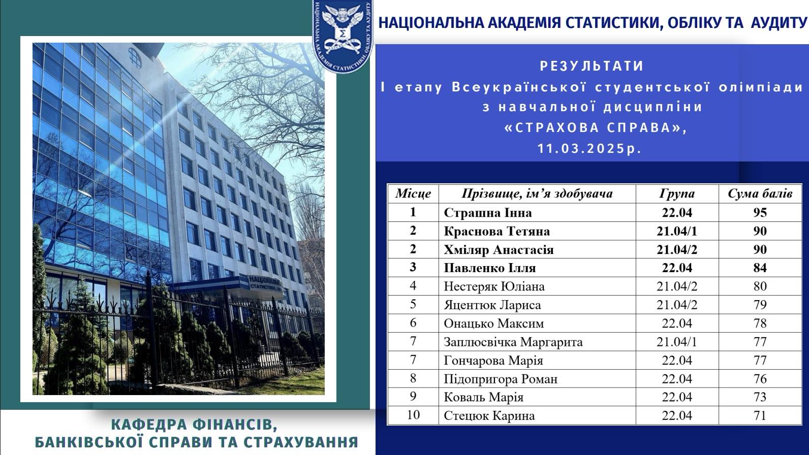 11 березня 2025 року в Національній академії статистики, обліку та аудиту відбувся І етап Всеукраїнської студентської олімпіади з навчальної дисципліни «Страхова справа».