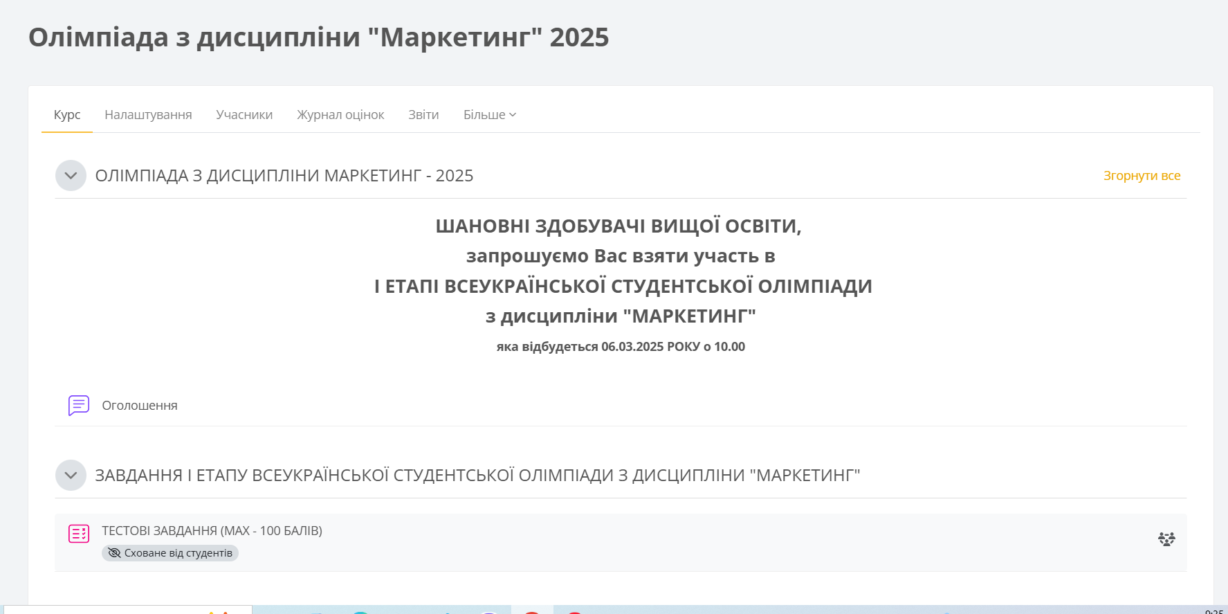 На кафедрі менеджменту, маркетингу та публічного управління Національної академії статистики, обліку та аудиту 6 березня 2025 року відбувся І етап Всеукраїнської студентської олімпіади з дисципліни «Маркетинг».