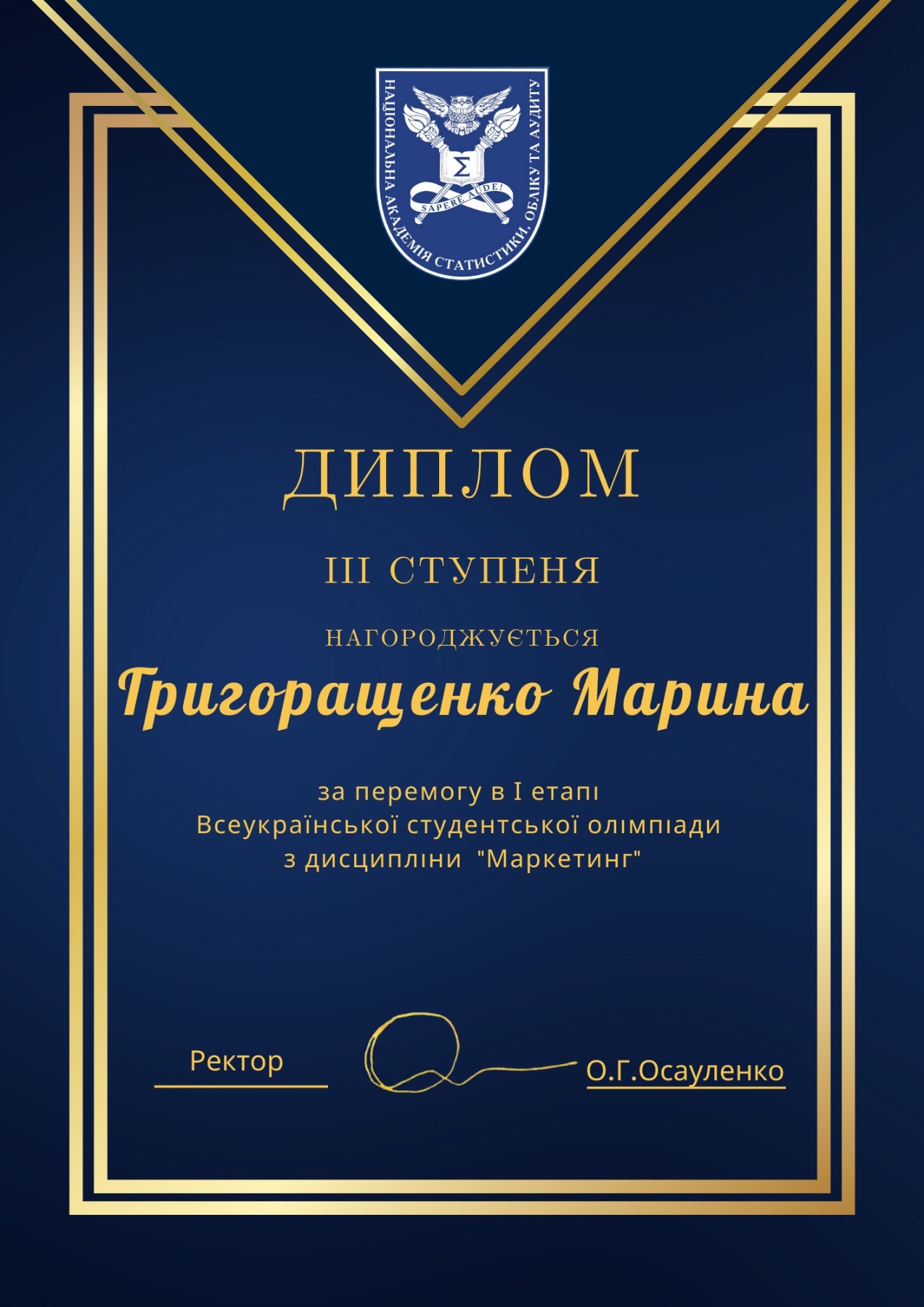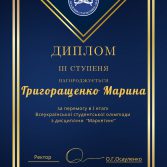 - ІІІ місце – Григоращенко Марина (група 23.06)