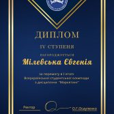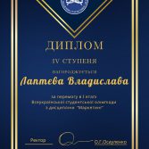 - ІV місце – Лаптєва Владислава (група 23.01) та Мілевська Євгенія (група 23.06)