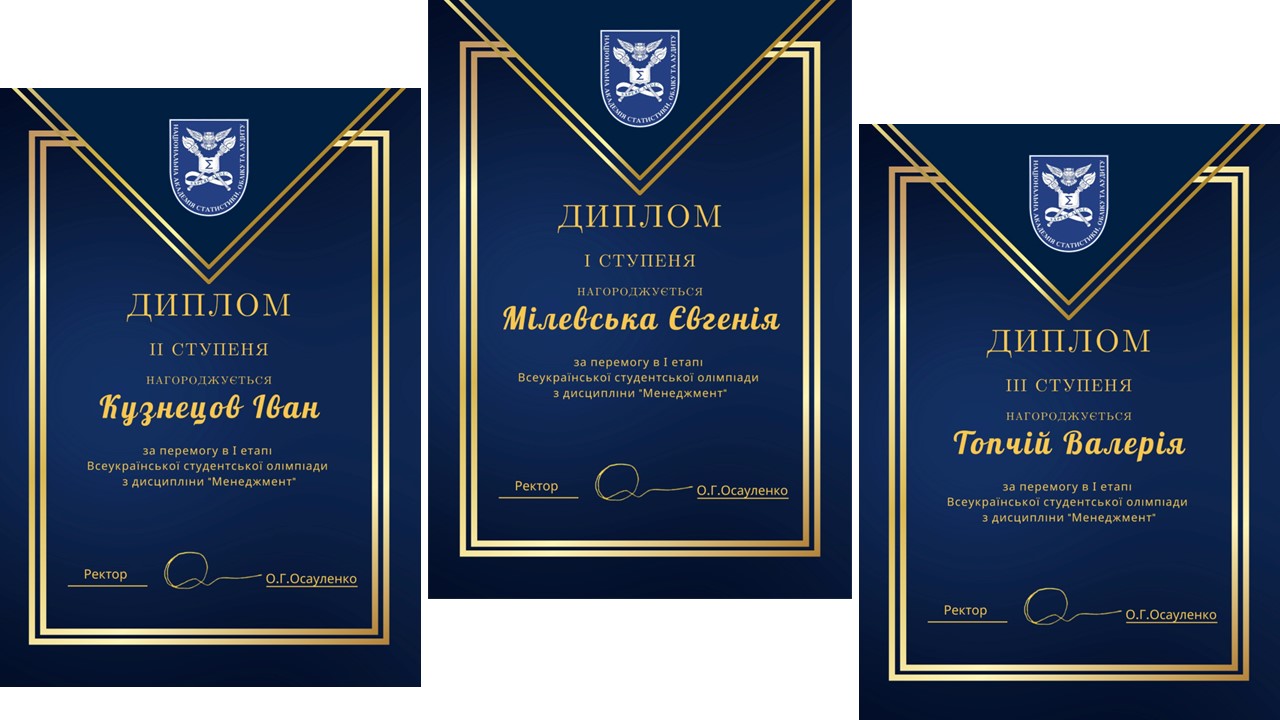 Вітаємо наших переможців! Ми горді студентами НАСОА, які взяли участь в Олімпіаді та показали відмінні знання з дисципліни «Менеджмент»! Бажаємо всім подальших успіхів у науковій діяльності та нових творчих досягнень!