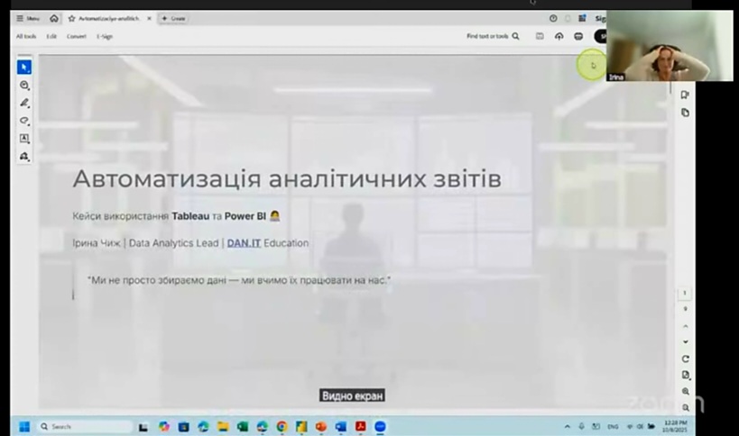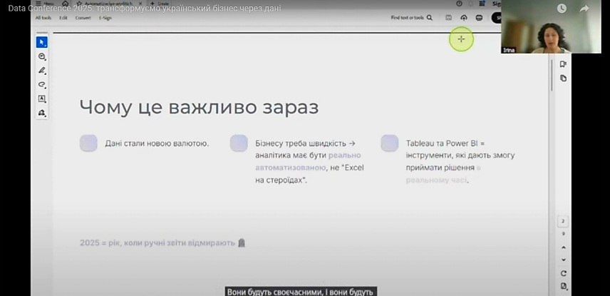 У межах конференції було представлено практичні кейси з візуалізації даних у Power BI; освітні ініціативи Data School та підготовку аналітичних кадрів у UKRSIBBANK BNP Paribas Group; можливості автоматизації звітності за допомогою Tableau та Power BI; перспективи використання баз даних SQL для аналітичних процесів у компаніях.