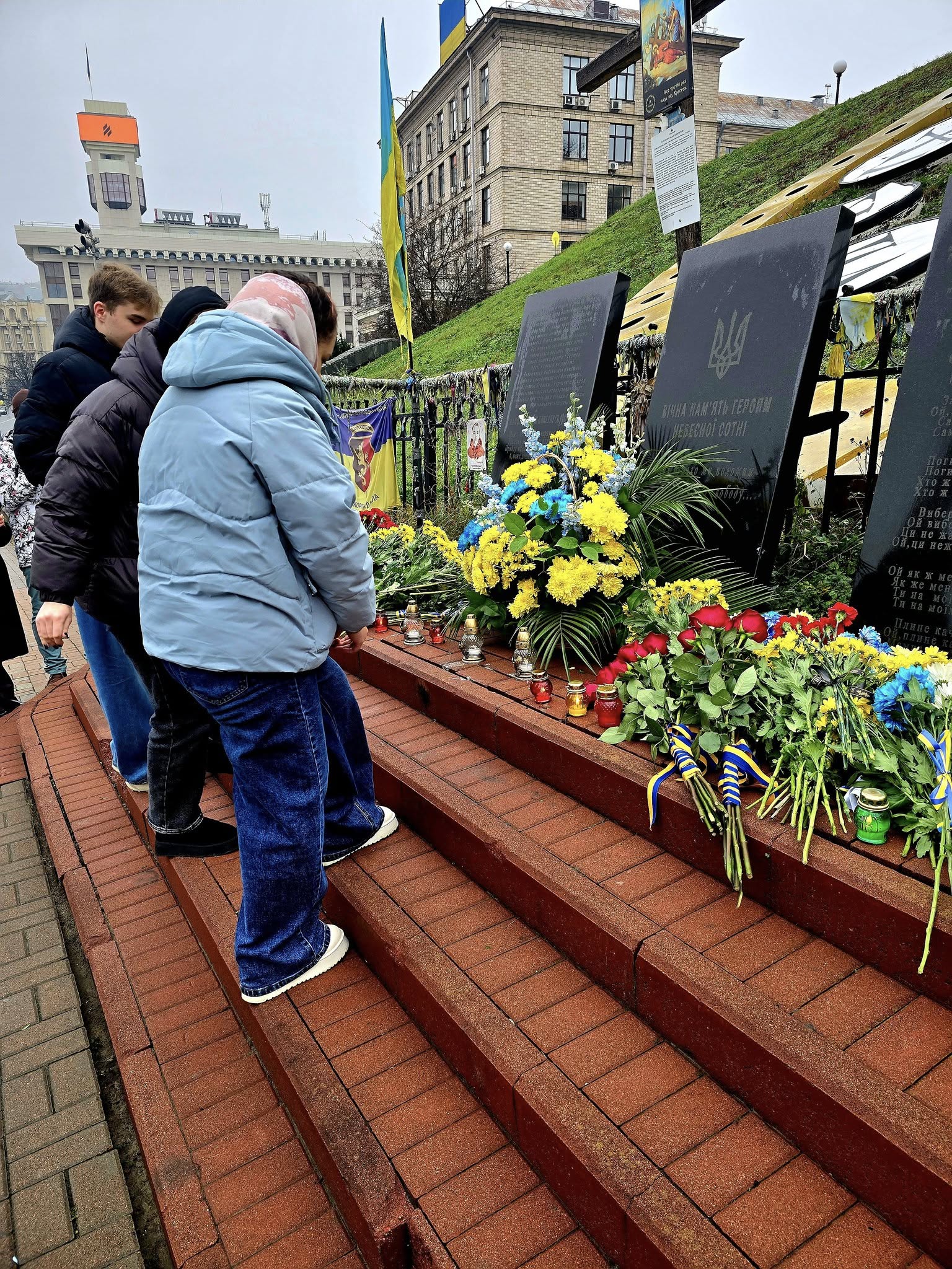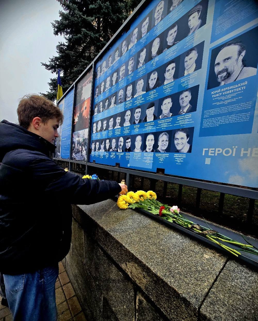 Сьогодні, в День Гідності та Свободи, представники студентського самоврядування Національної академії статистики, обліку та аудиту і Фахового коледжу бізнесу та аналітики разом з проректором з інформаційно-комунікаційної діяльності та цифрової трансформації – Горобець О.О. вшанували пам’ять учасників Революції Гідності на Алеї Героїв Небесної Сотні та пройшли місцями трагічних подій на вулиці Михайла Грушевського.