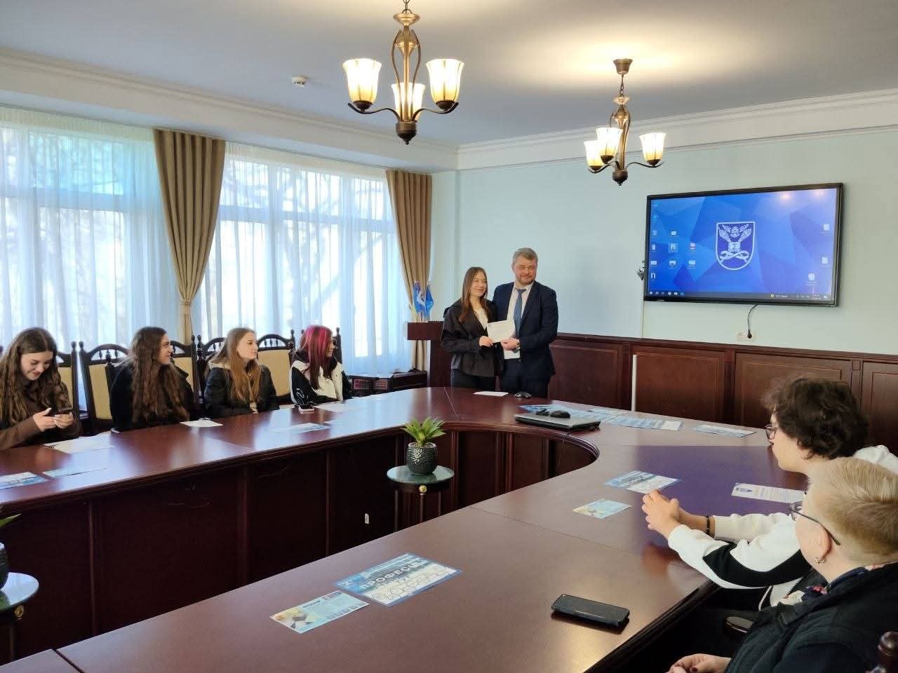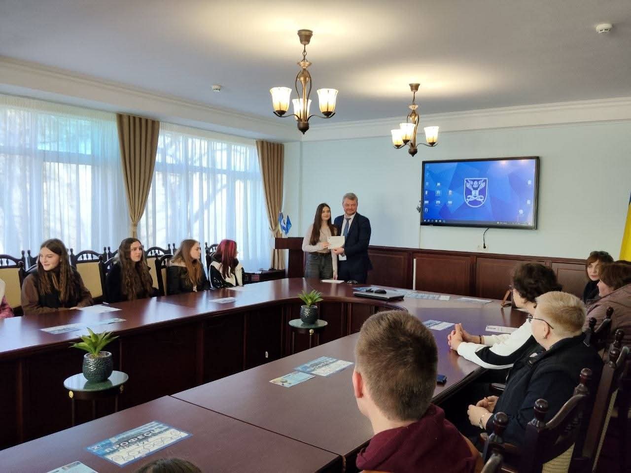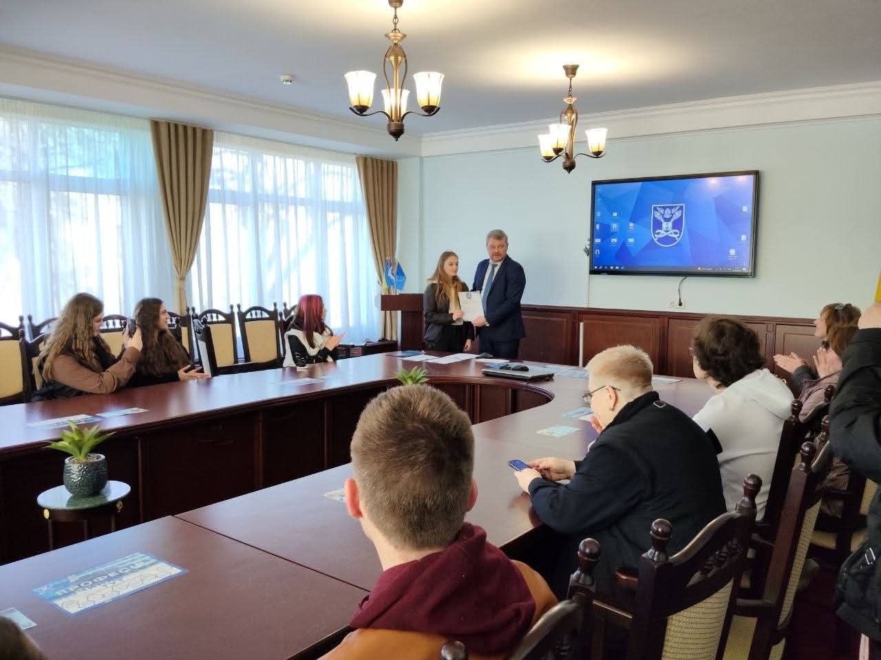 На завершення зустрічі майбутнім абітурієнтам вручили сертифікати за участь в ХXІV Всеукраїнській науковій конференції «Розвиток системи обліку, аналізу, аудиту та оподаткування в Україні: теорія, методологія, організація», присвяченим пам’яті д.е.н., професора, заслуженого діяча науки і техніки України О.С. Бородкіна.