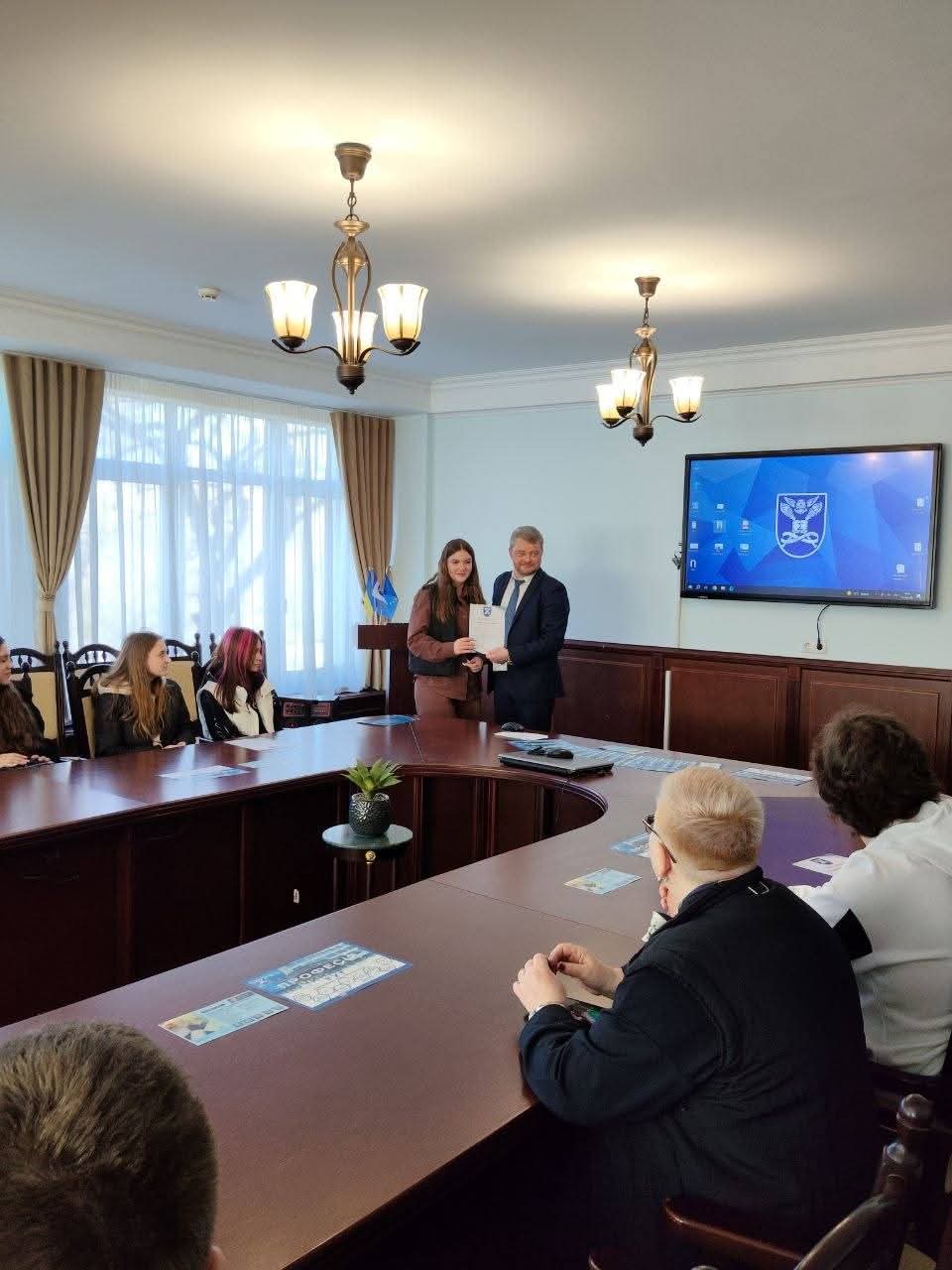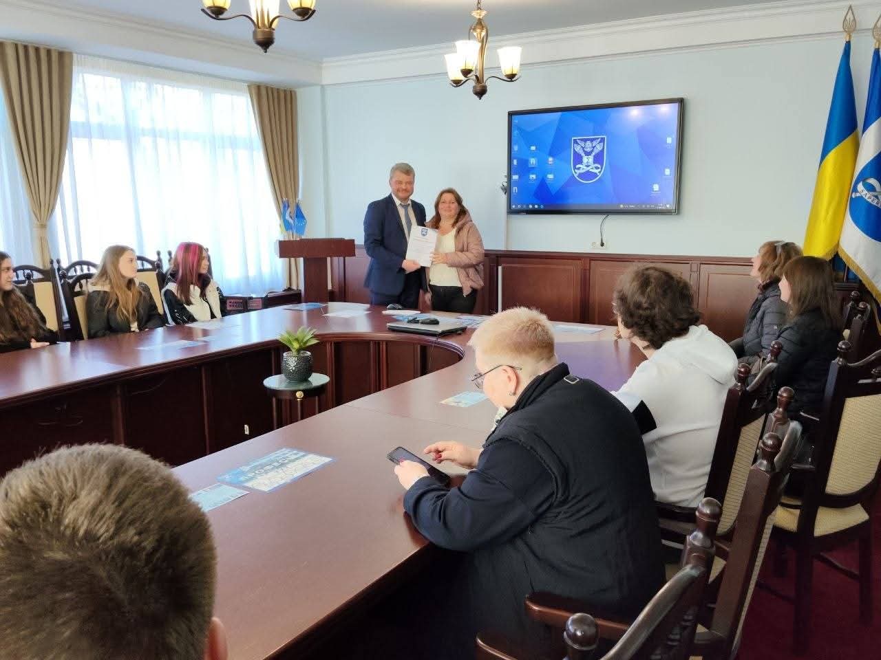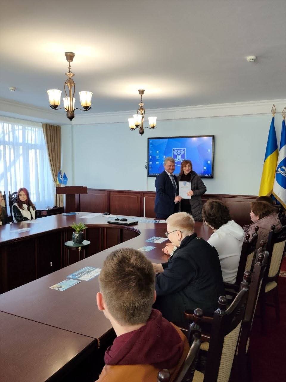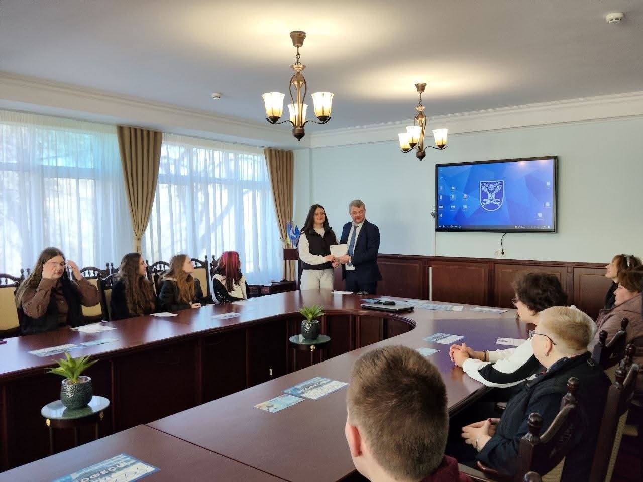 На завершення зустрічі майбутнім абітурієнтам вручили сертифікати за участь в ХXІV Всеукраїнській науковій конференції «Розвиток системи обліку, аналізу, аудиту та оподаткування в Україні: теорія, методологія, організація», присвяченим пам’яті д.е.н., професора, заслуженого діяча науки і техніки України О.С. Бородкіна.