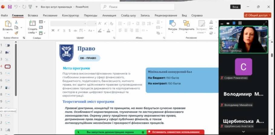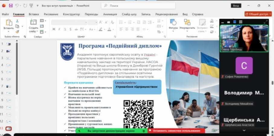 Під час зустрічі з абітурієнтами проректор НАСОА, к.е.н., доцент Горобець О.О. охарактеризувала освітні програми Академії та поділилася особливостями вступної кампанії у 2026 р.
