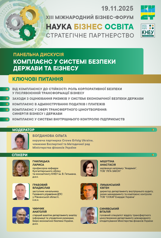 - роль комплаєнсу у зміцненні корпоративної безпеки в умовах трансформації бізнесу;