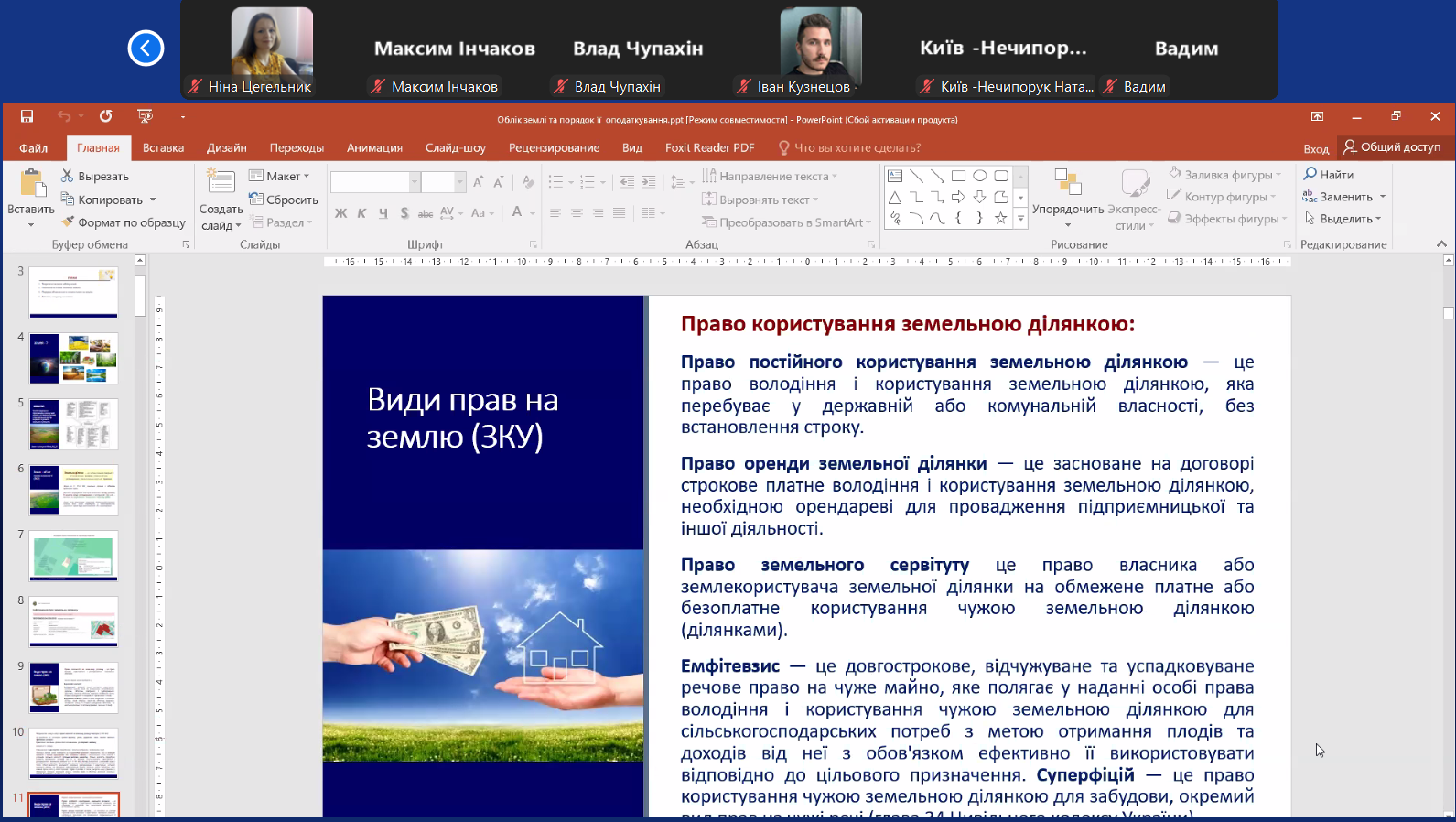 - поглиблене розуміння методики нормативної грошової оцінки земельних ділянок.