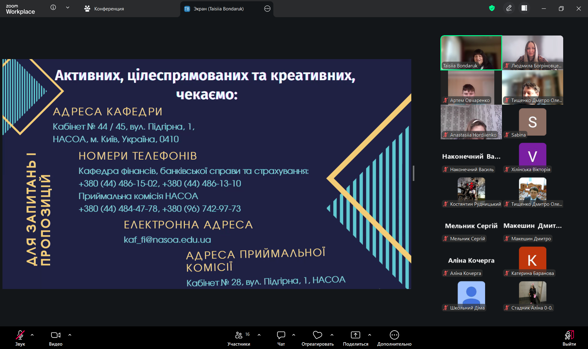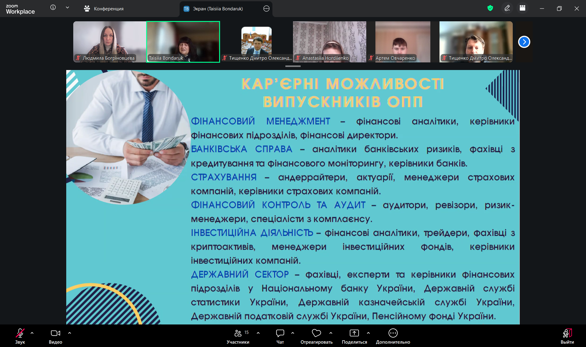 У заході взяли участь завідувач кафедри, доктор економічних наук, професор, Заслужений економіст України Таїсія Бондарук, а також кандидати економічних наук, доценти, доценти кафедри Людмила Богріновцева та Дмитро Тищенко.