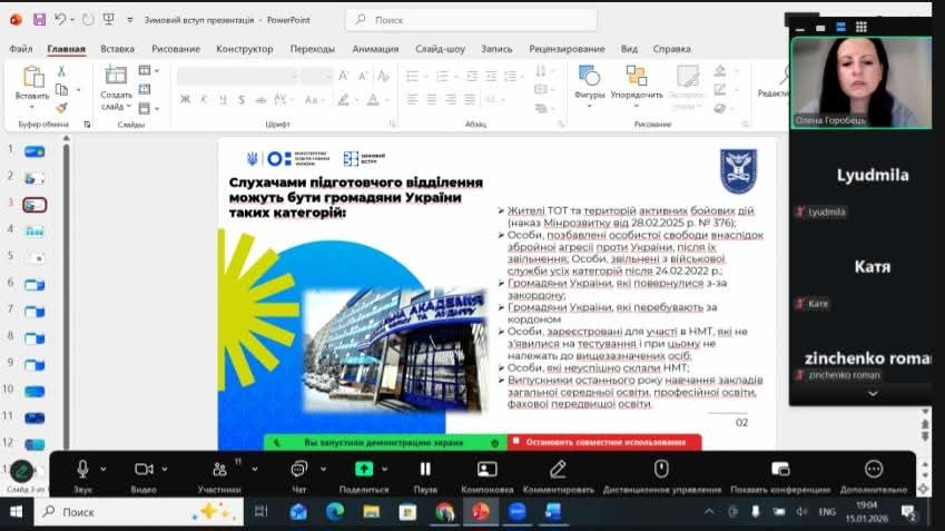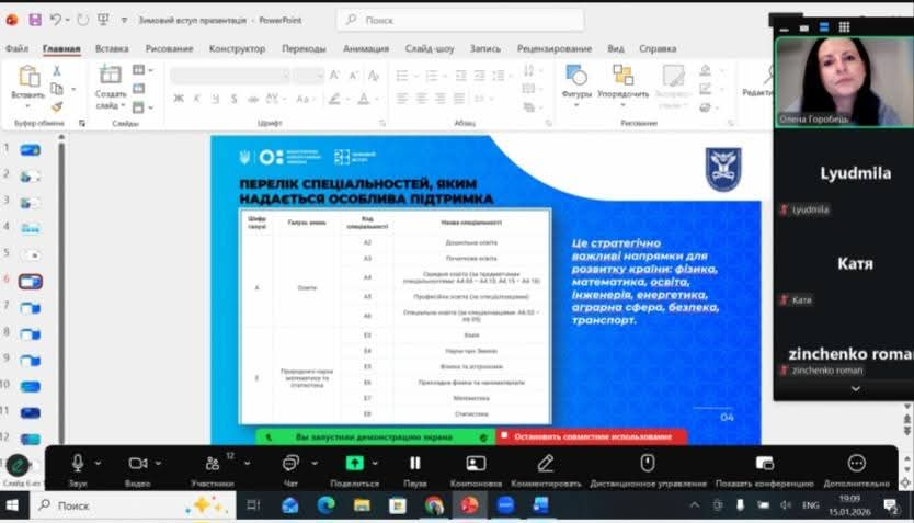Під час зустрічі, Горобець О.О. охарактеризувала Проєкт, розкрила особливості Курсів підготовки до НМТ, розповіла про умови отримання 15 балів до конкурсного балу за результатами підготовки, а також відповіла на запитання майбутніх вступників, які, зокрема, стосуватися Вступної кампанії-2026.