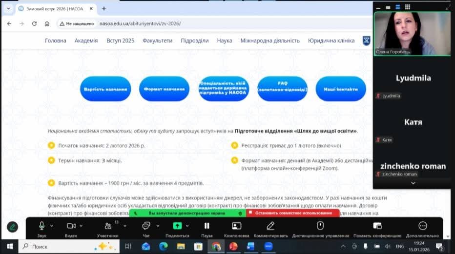 15 січня проректором з інформаційно-комунікаційної діяльності та цифрової трансформації НАСОА, к.е.н., доцентом – Горобець О.О. було проведено консультаційну зустріч для зацікавлених потенційних слухачів Курсів підготовки до НМТ в рамках проєкту “Відкритий шлях до вищої освіти”.