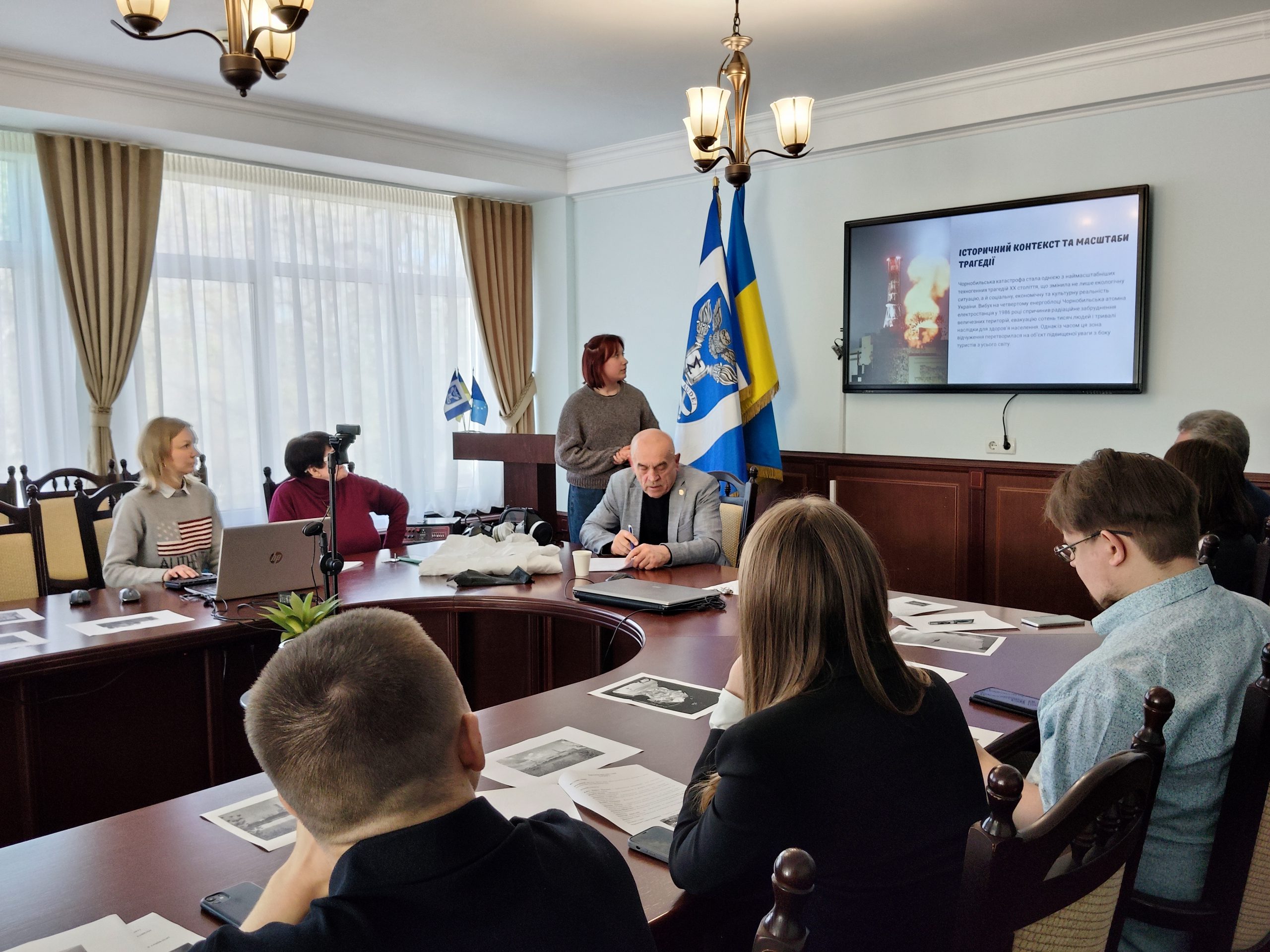 Дуже чуттєвими були спогади Анни Сергіївни Гаврисевич, завідувачки відділом по роботі з іноземними студентами, щодо участі дідуся, який у числі найперших був направлений на ліквідацію аварії Чорнобильської АЕС. Батько з групою ініціативної студентської молоді взяв участь у будівництві будинків для людей, евакуйованих із зони відчуження. Студентка Анна Дідківська поділилася свідченнями батьків про події того часу. Ці історії викликали щиру емпатію всіх присутніх.