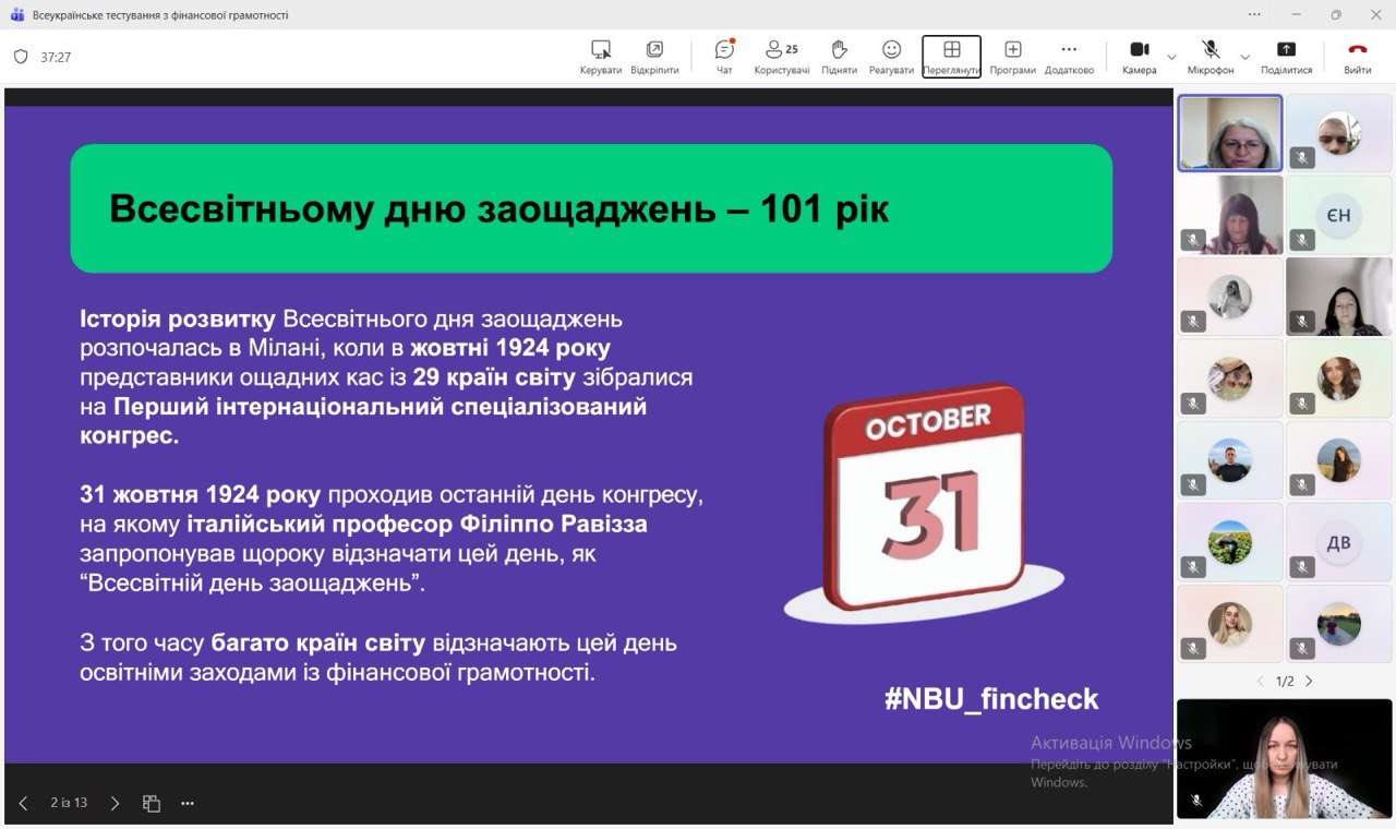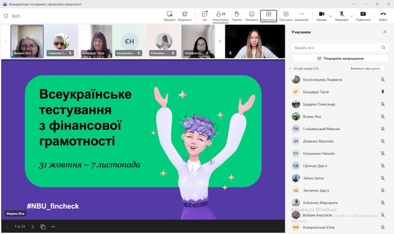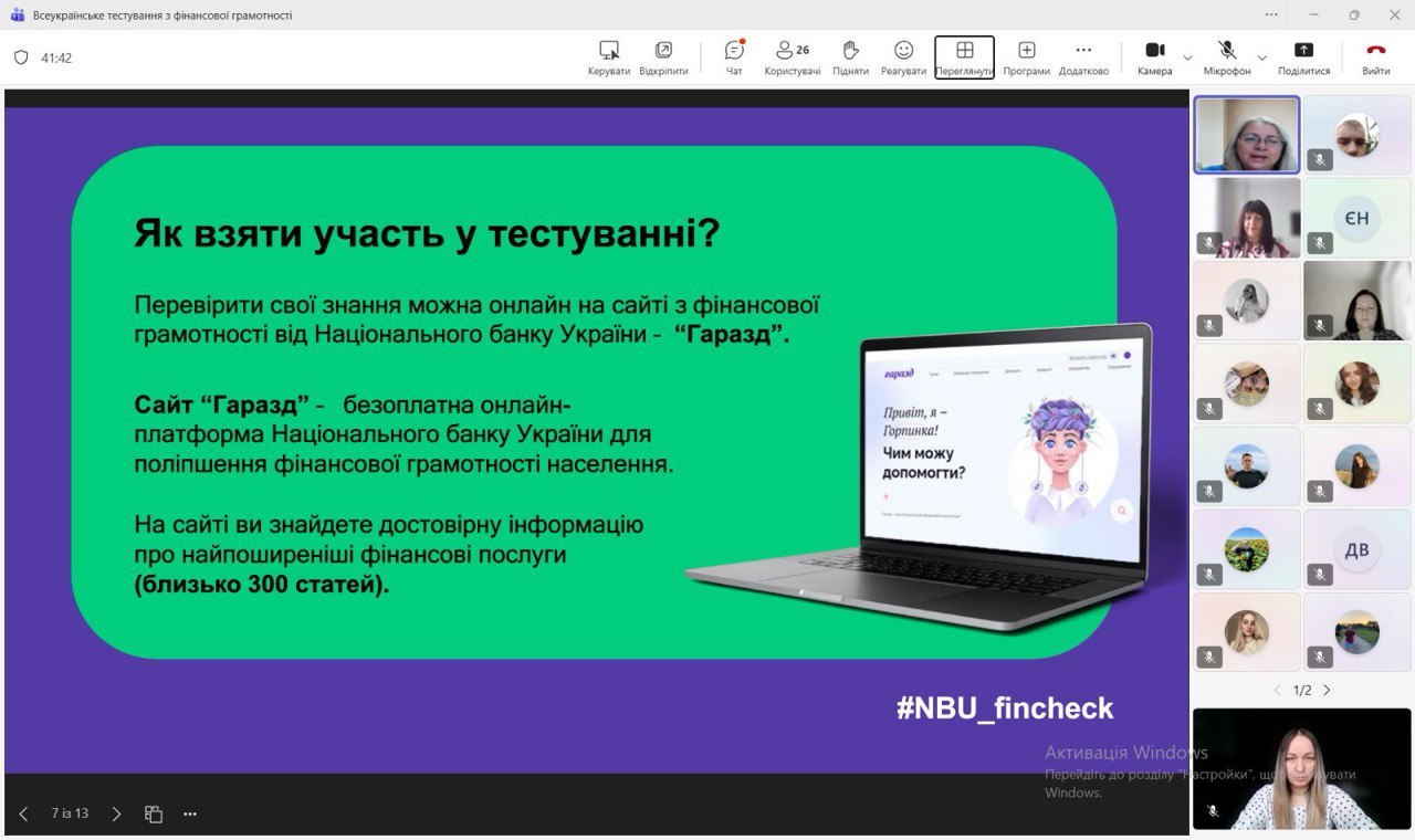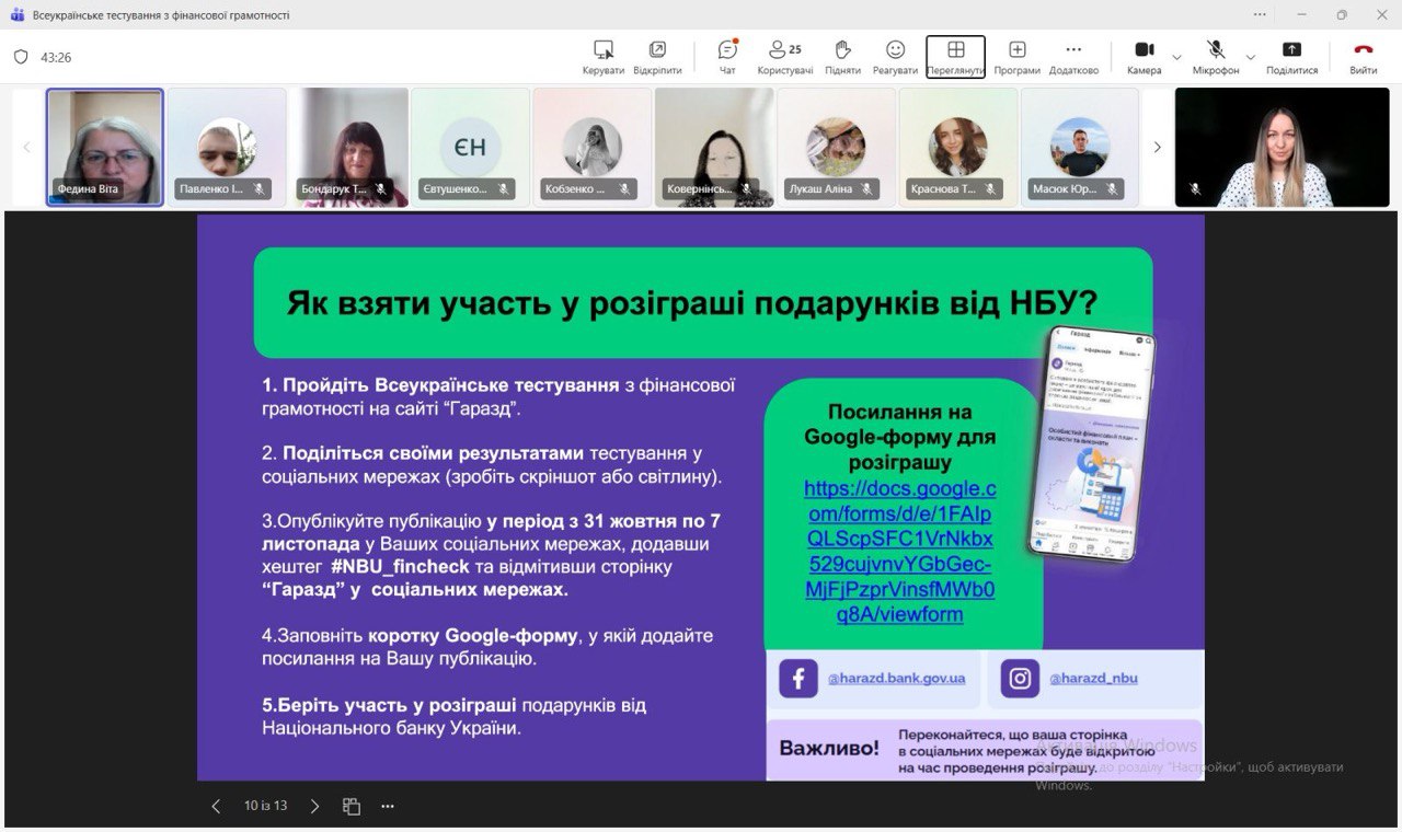 За ініціативи кафедри фінансів, банківської справи та страхування НАСОА здобувачі вищої освіти, викладачі та працівники Академії долучилися до Всеукраїнського тестування з фінансової грамотності, організованого Національним банком України. Мета участі – не лише перевірити власні знання, а й підтримати ідею поширення фінансової обізнаності серед широкого кола громадян. Адже розвиток фінансової культури є важливою передумовою сталого економічного зростання та формування відповідального суспільства.
