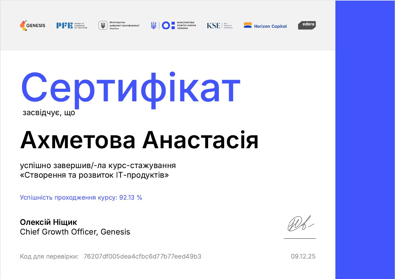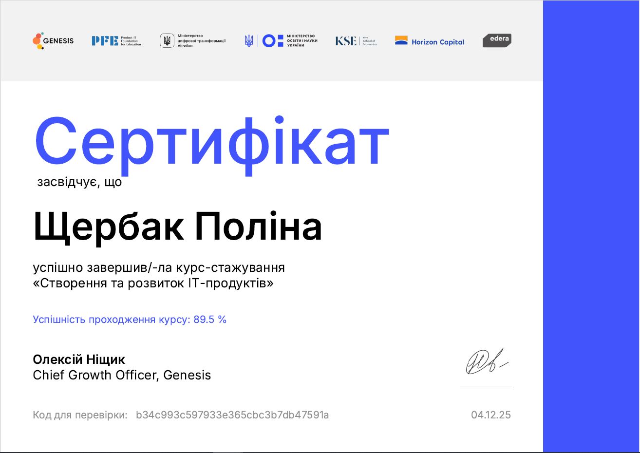Співпраця між кафедрою інформаційних технологій за ініціативою к.е.н., доц, завідувача кафедри інформаційних технологій Ставицького Олександра Вікторовичта з компанією Genesis у межах дисципліни «Вступ до спеціальності» стала важливим кроком у впровадженні елементів неформальної освіти для студентів спеціальності 122 «Комп’ютерні науки». Завдяки цьому партнерству студенти отримали доступ до курсу-стажування «Створення та розвиток ІТ-продуктів», що поєднує сучасні теоретичні знання з практичними кейсами реальної індустрії.