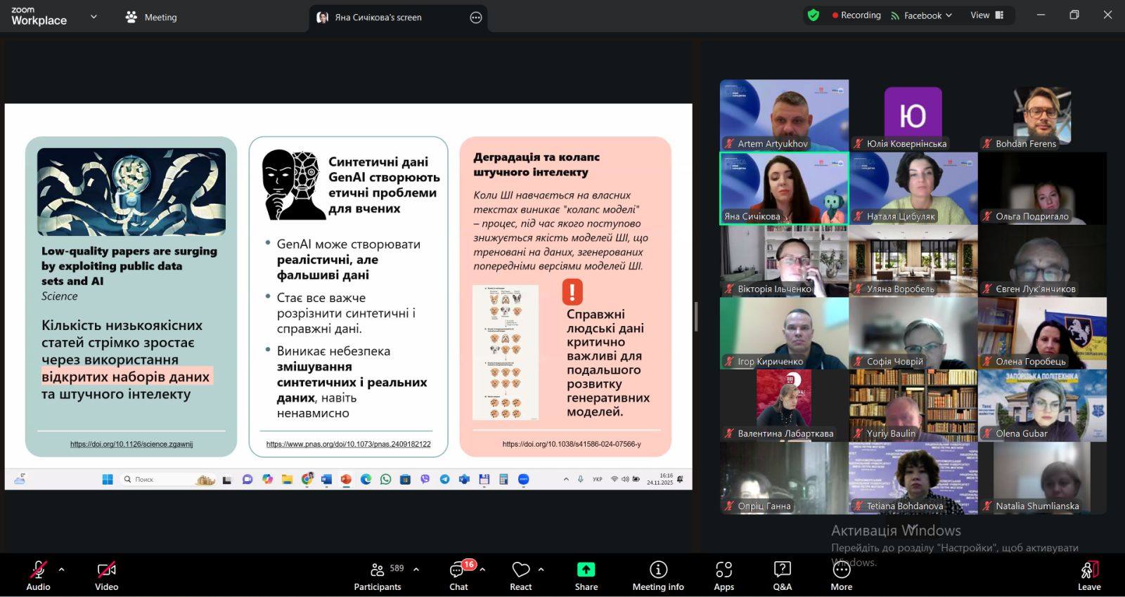 Представники Національної академії статистики, обліку та аудиту у складі проректора з інформаційно-комунікаційної діяльності та цифрових трансформацій, к.е.н., доцента – Горобець О.О., декана фінансово-економічного факультету, к.е н., доцента – Євтушенко Н.М., завідувача кафедри фінансів, банківської справи та страхування, д.е.н., професора – Бондарук Т.Г., завідувача кафедри статистики та математичних методів в економіці, к.е.н., доцента – Гринчак Н.А., в.о.завідувача кафедри ІТ, к.е.н., доцента – Ставицького О.В., завідувача відділу міжнародного співробітництва, к.е.н., доцента – Мотузки О.М., к.е.н., доцента кафедри фінансів, банківської справи та страхування – Богріновцевої Л.М., к.е.н., доцента, доцента кафедри – Ковернінської Ю.В., к.е.н., доцента, доцента кафедри – Федини В.В., к.е.н., доцента, доцента кафедри менеджменту, марентингу та публічного управління – Пархоменко В.В. долучилися до масштабного курсу ГО «Прогресильні» та Українського офісу дослідницької доброчесності «Наука ✕ ШІ: нова парадигма».