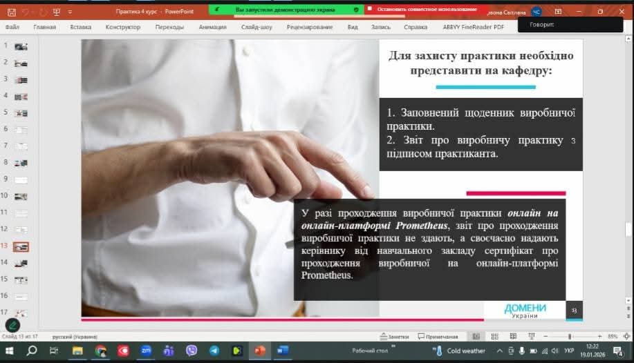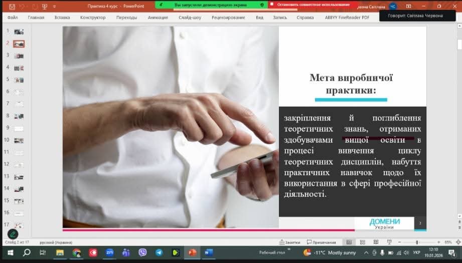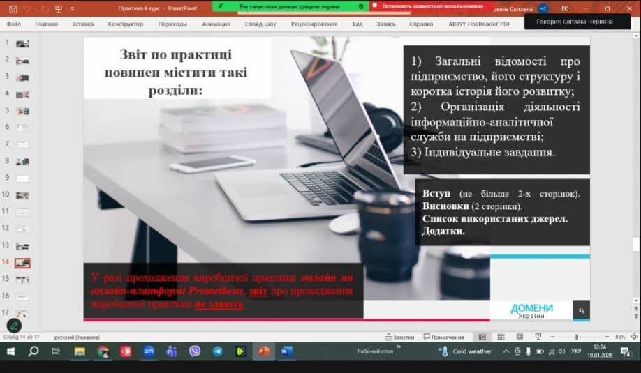 В рамках інструктажу, Червона С.П. розкрила особливості проходження виробничої практики, мету та завдання.