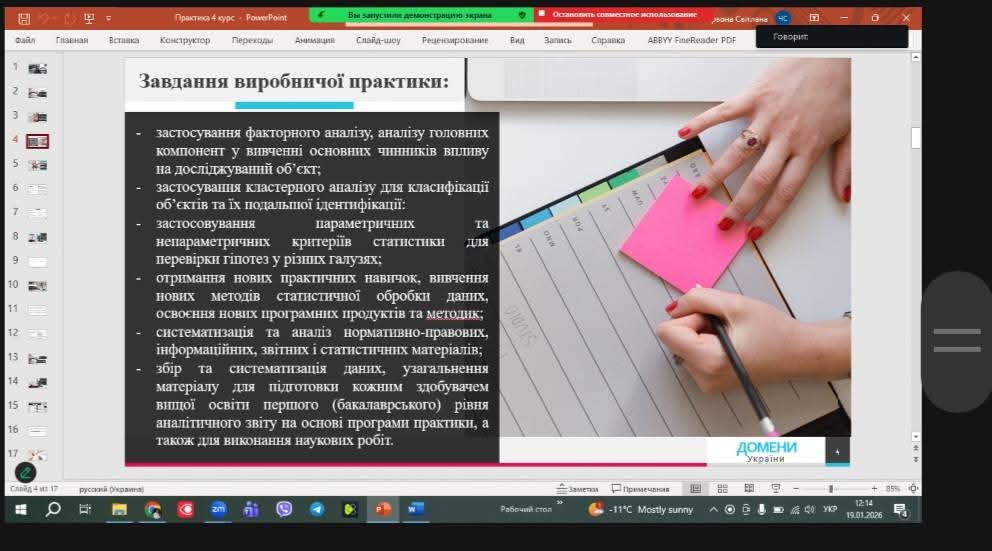 19 січня на кафедрі статистики та математичних методів в економіці НАСОА к.е.н., доцент, доцент кафедри Червона С.П. провела інструктаж напередодні виробничої практики для здобувачів першого (бакалаврського) рівня вищої освіти 4 року навчання ОПП “Прикладна статистика та бізнес-аналітика”.