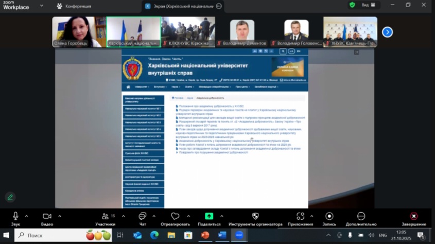 Із вступним словом до учасників звернувся Сербенюк Симон Олександрович – науковий співробітник відділення організації наукової роботи відділу організації наукової діяльності ХНУВС, відповідальний з питань академічної доброчесності у науковій діяльності.