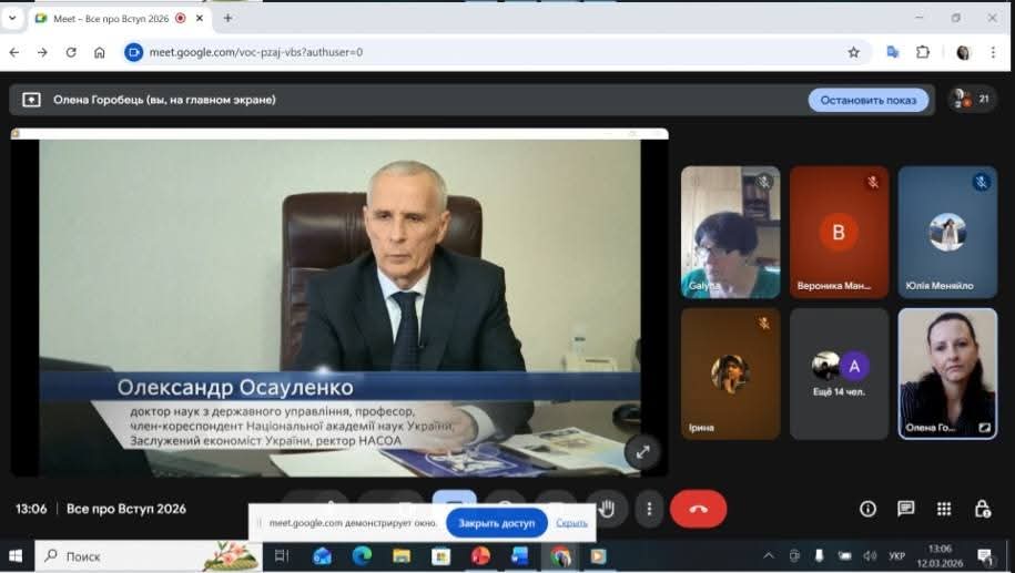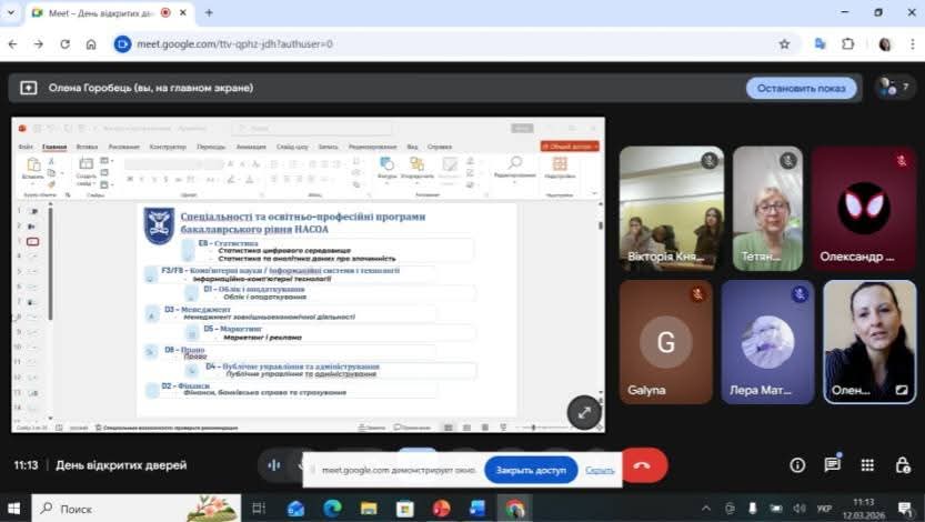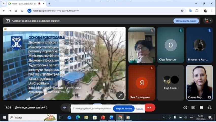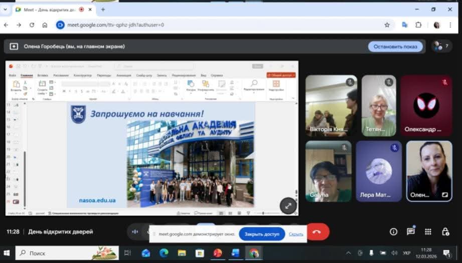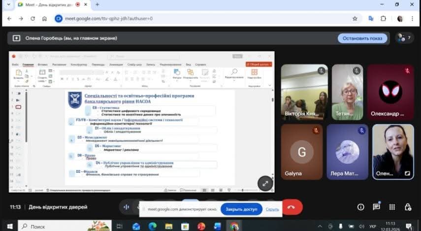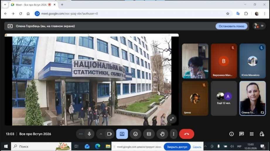 Сьогодні, у форматі онлайн, представники Національної академії статистики, обліку та аудиту у складі проректора, к.е.н., доцента – Горобець О.О., завідувача відділу профорієнтаційної роботи, к.пед.н, доцента – Черушевої Г.Б. та менеджера з реклами – Гурби Т.А., зустрілися з майбутніми випускниками Шосткинських загальноосвітніх шкіл І- ІІІ ступенів N4, N 5, N12 Шосткинської міської ради Сумської області.