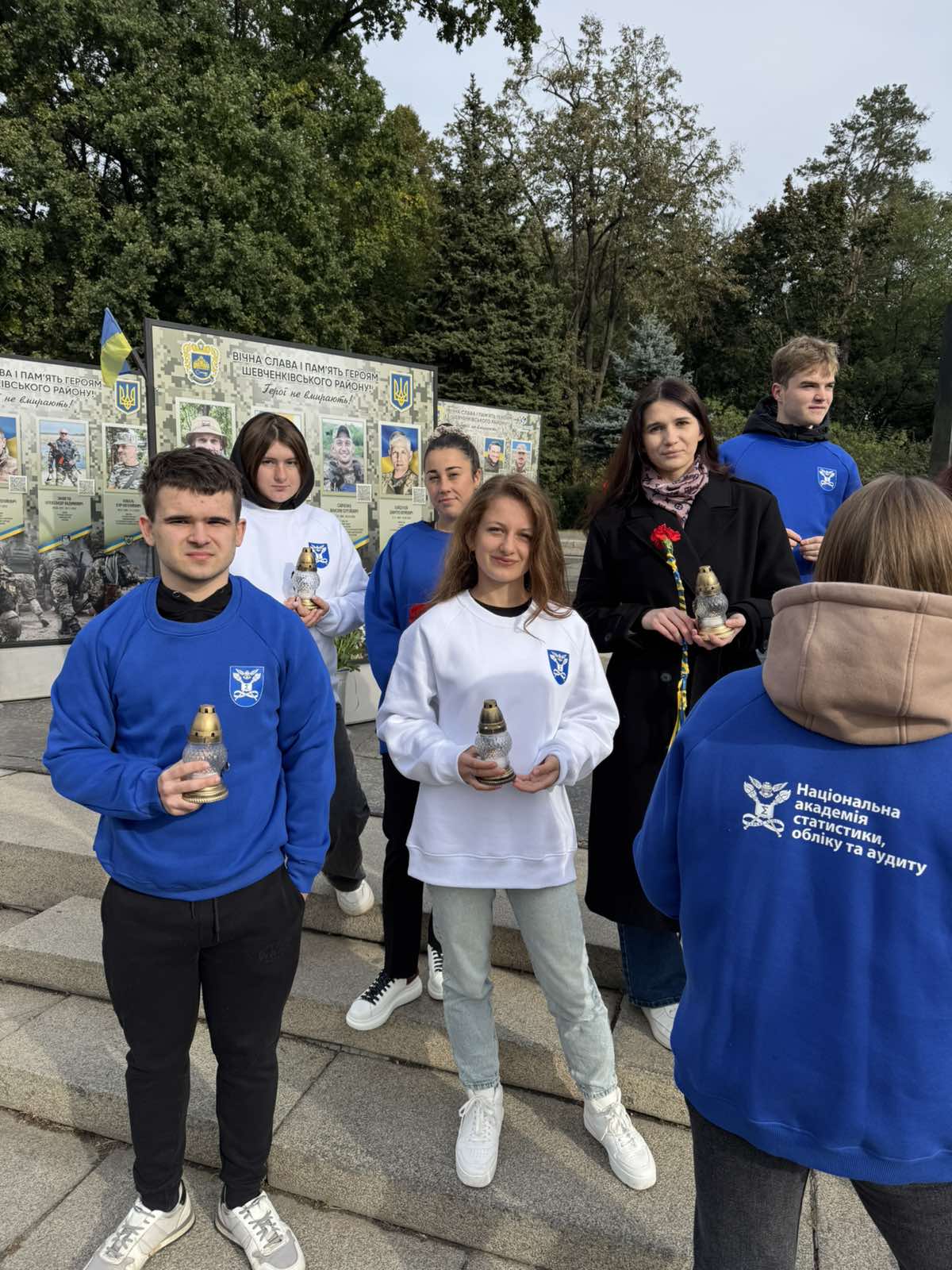 Сьогодні здобувачі освіти Національної академії статистики, обліку та аудиту та Фахового коледжу бізнесу та аналітики єдиним серцем долучилися до вшанування наших Героїв – захисників і захисниць України.