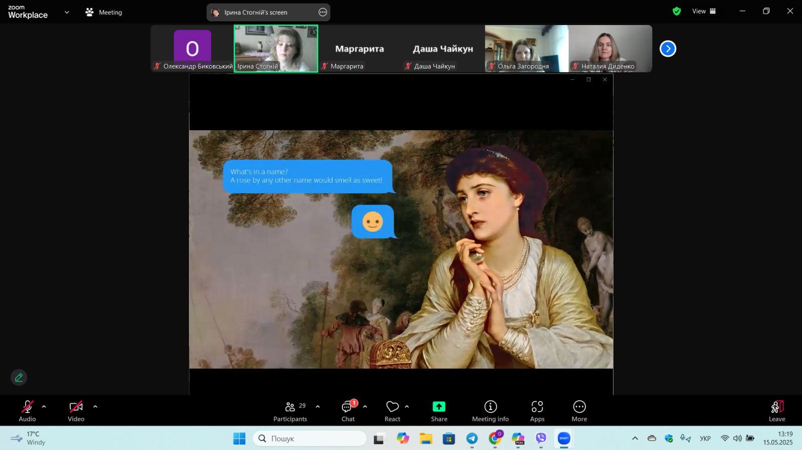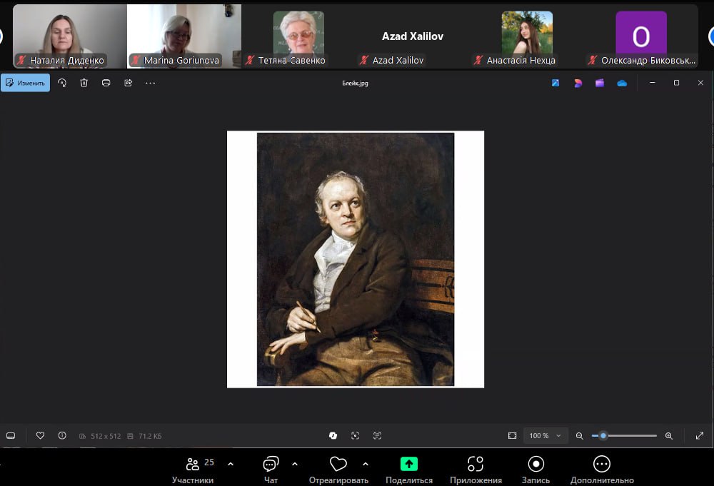 Модератор зустрічі та керівник студентського товариства «English Club» Ірина Стогній подякувала всім присутнім за долучення до творчої спадщини Великого Майстра.