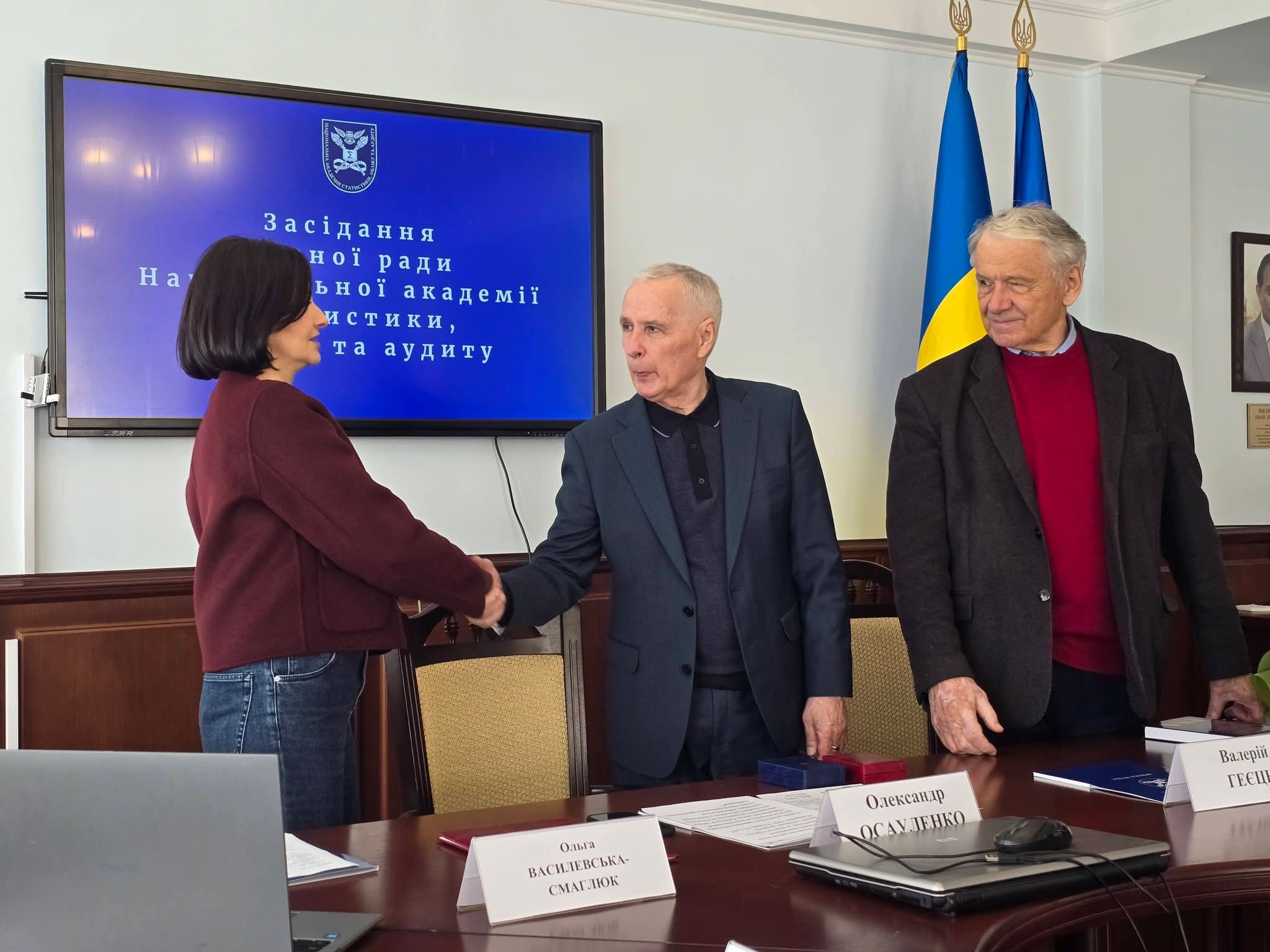 Нагороду вручив Валерій Михайлович Геєць, академік-секретар Відділення економіки НАН України, академік, д.е.н, професор.