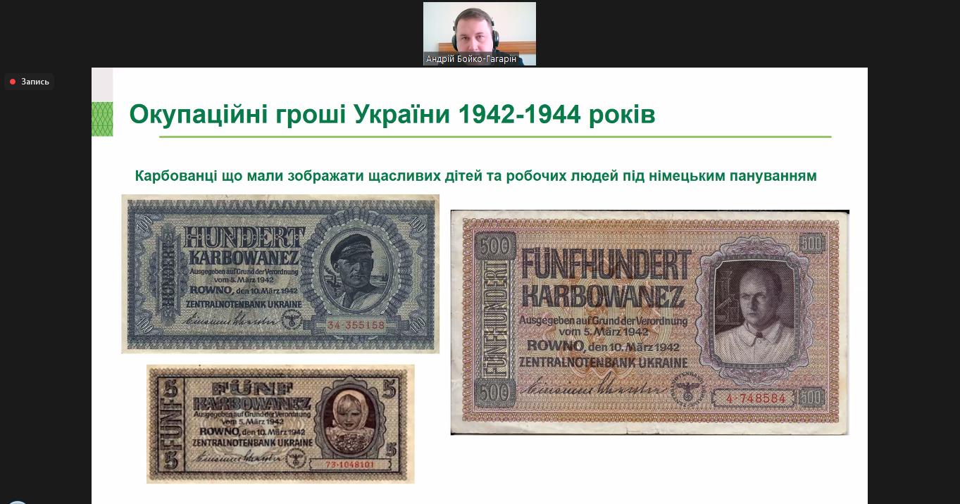 Спікером зустрічі виступив Андрій Бойко-Гагарін, доктор історичних наук, старший зберігач фондів Музею грошей Національного банку України. Разом із відомим експертом-нумізматом здобувачі вищої освіти ОПП «Фінанси, банківська справа та страхування» подивилися на гроші не лише як на економічний інструмент, а й як на унікальний інформаційний носій.