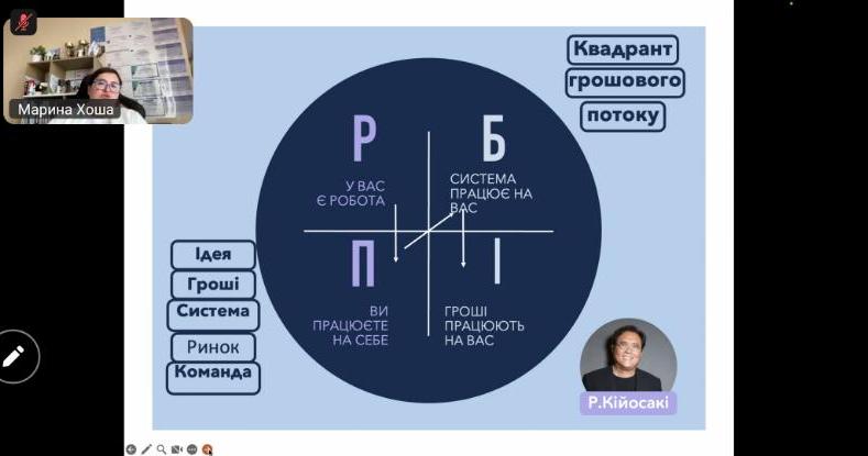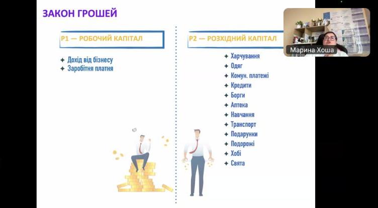Лектором виступила Марина Хоша – авторка грифованих методик МОН України з фінансової освіти, експертка з понад 20-річним досвідом викладання, засновниця та власниця школи «ECO FINANCE», бізнес-тренерка, амбасадор з фінансової грамотності Фонду гарантування вкладів фізичних осіб, спікерка Національного проєкту з фінансової грамотності 2 та 2:0, тренерка з фінансової грамотності в Global Money Week, фінансова радниця та експертка зі страхування життя.