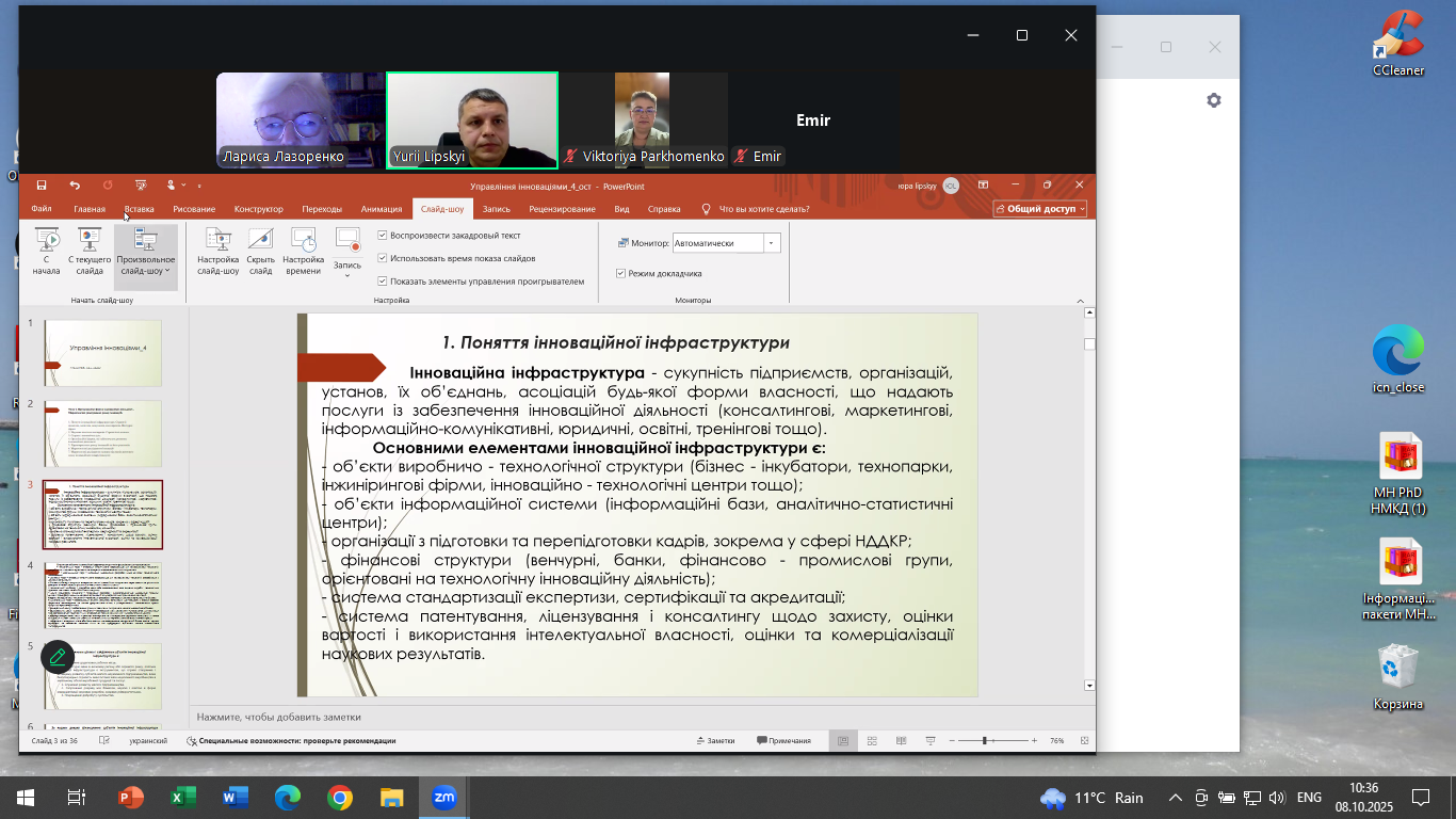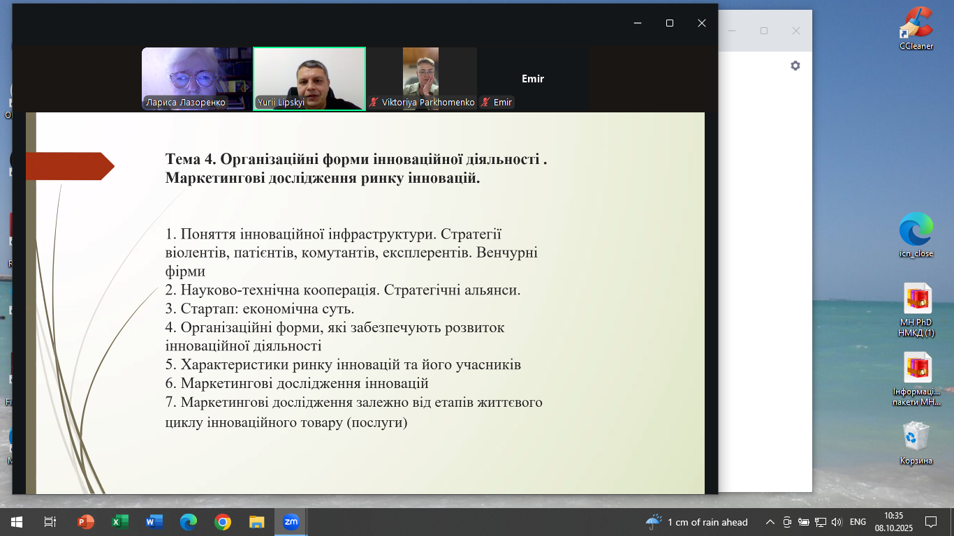 8 жовтня 2025 року о 10.00 відбулась відкрита лекція на тему: «Організаційні форми інноваційної діяльності», яка проводилась кандидатом економічних наук, доцентом кафедри менеджменту, маркетингу та публічного управління Ліпським Юрієм Володимировичем. У лекції взяли участь студенти та викладачі кафедри, зокрема завідувач кафедри Лазоренко Л.В., доценти кафедри: Пархоменко В.В., Мотузка О.М., Луньова Т.С., ст. викл. Гаврисевич А. С. та інші.