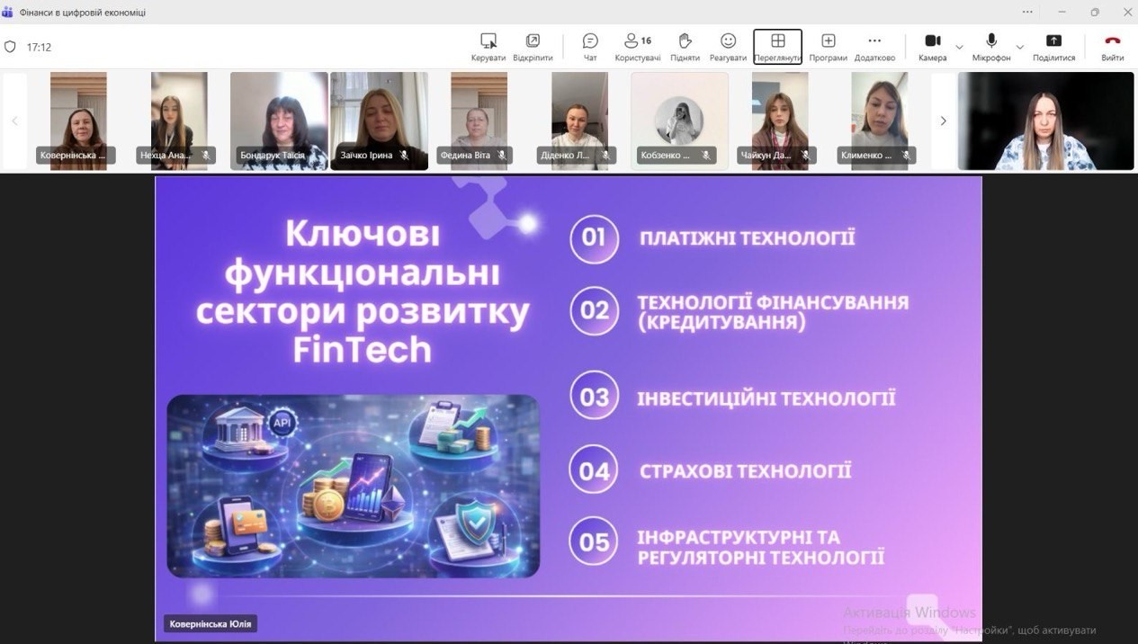 Обговорення сучасних кейсів із ринку фінансових технологій зробило лекцію особливо змістовною та прикладною. Учасники активно ставили запитання та долучалися до дискусії, що підтвердило актуальність теми для професійної підготовки.