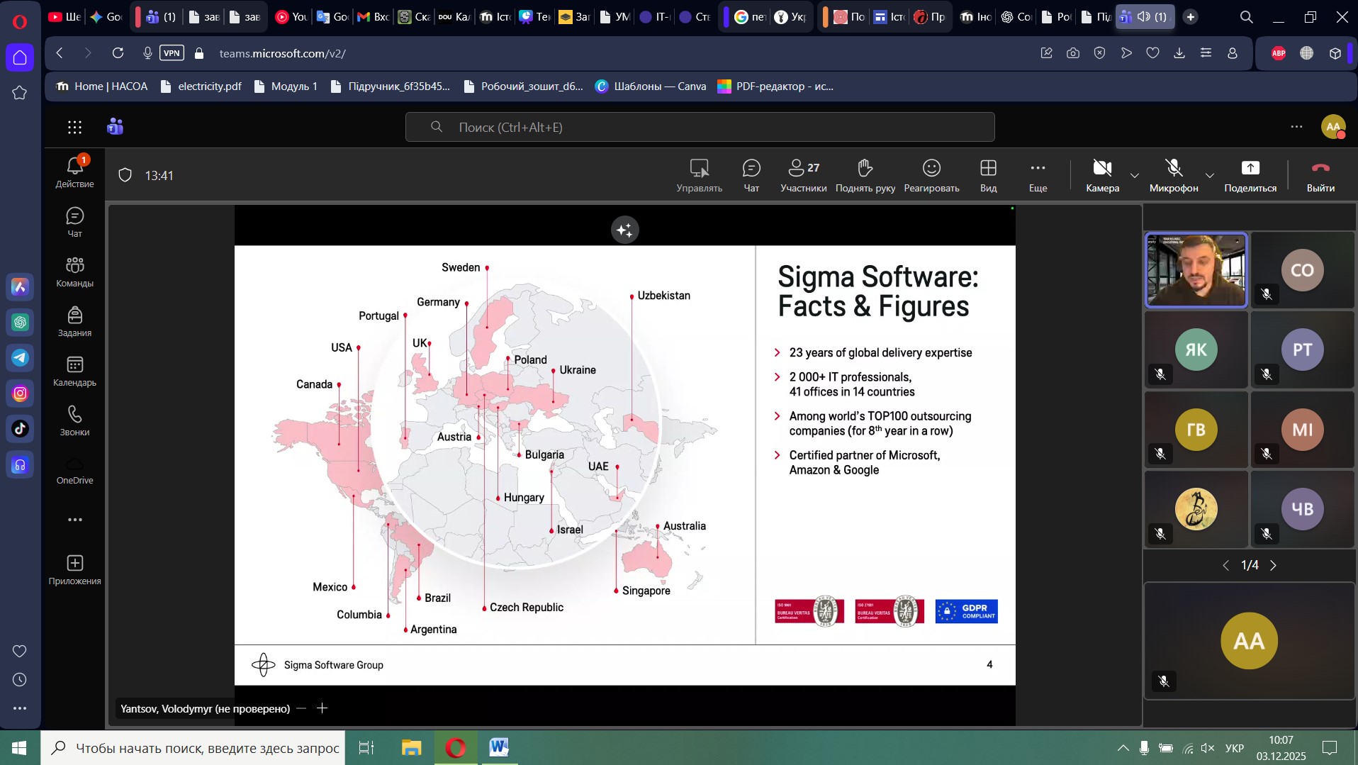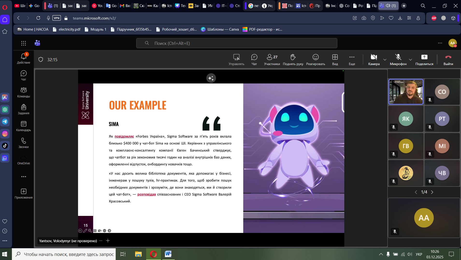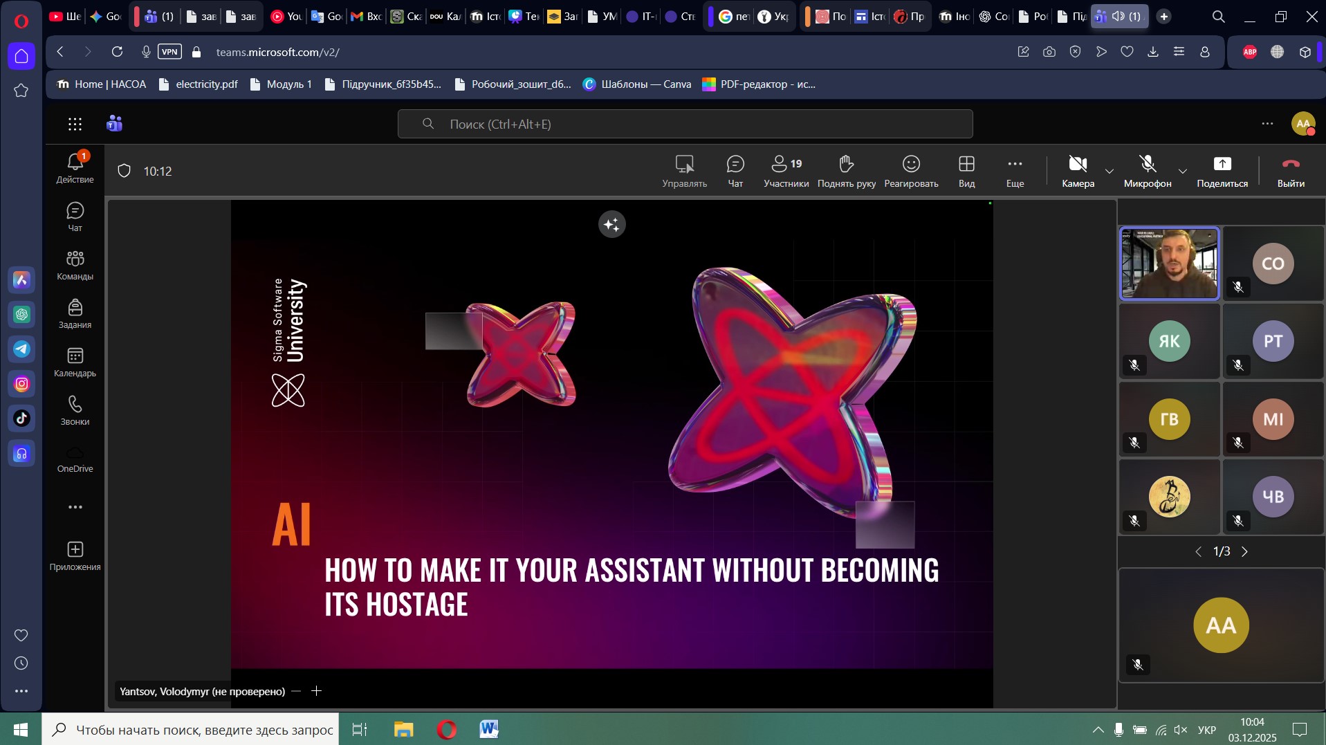 Основним спікером і стейкхолдером зустрічі став представник компанії Sigma Software – Володимир Янцов, який обіймає посаду L&D Program Manager. Володимир поділився власним баченням розвитку штучного інтелекту в українському та глобальному ІТ-просторі, розповів про роль компанії в інноваційних проєктах, а також наголосив на тому, що сучасний спеціаліст має не лише технічні компетенції, а й здатність до швидкого навчання та адаптації. Його виступ був насичений практичними прикладами із реальних кейсів Sigma Software, що викликало значний інтерес серед студентів.