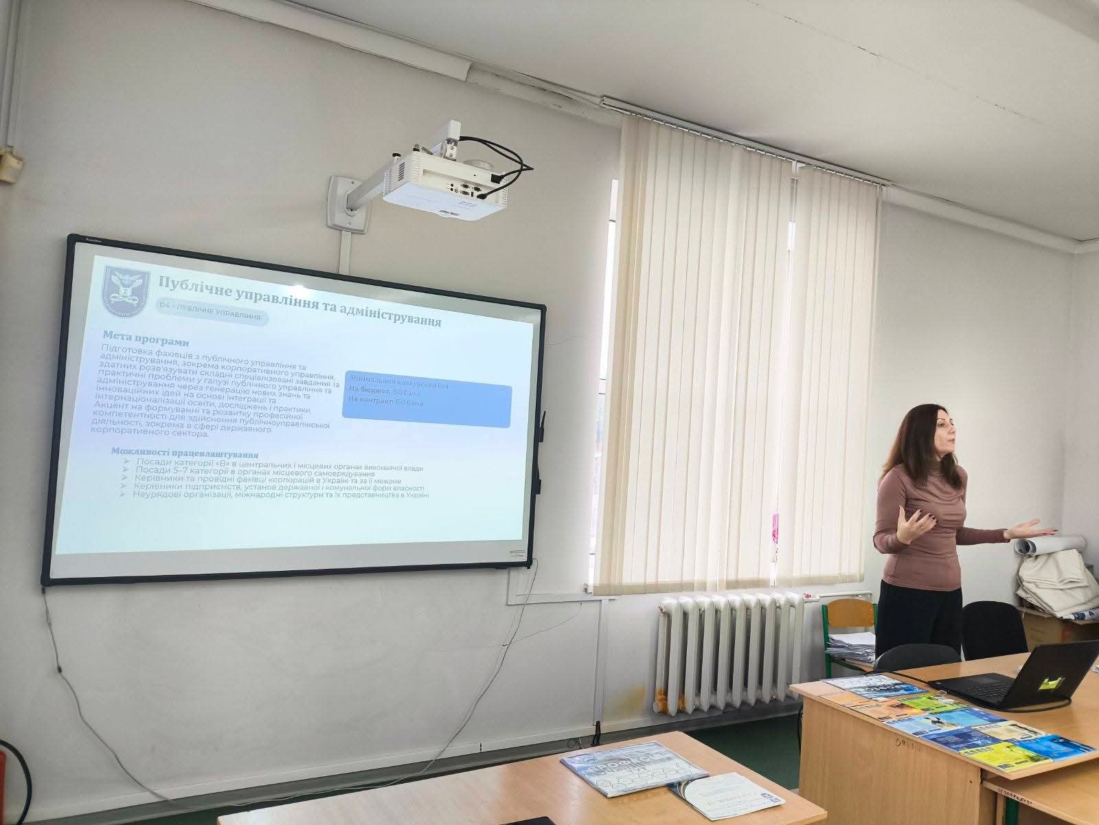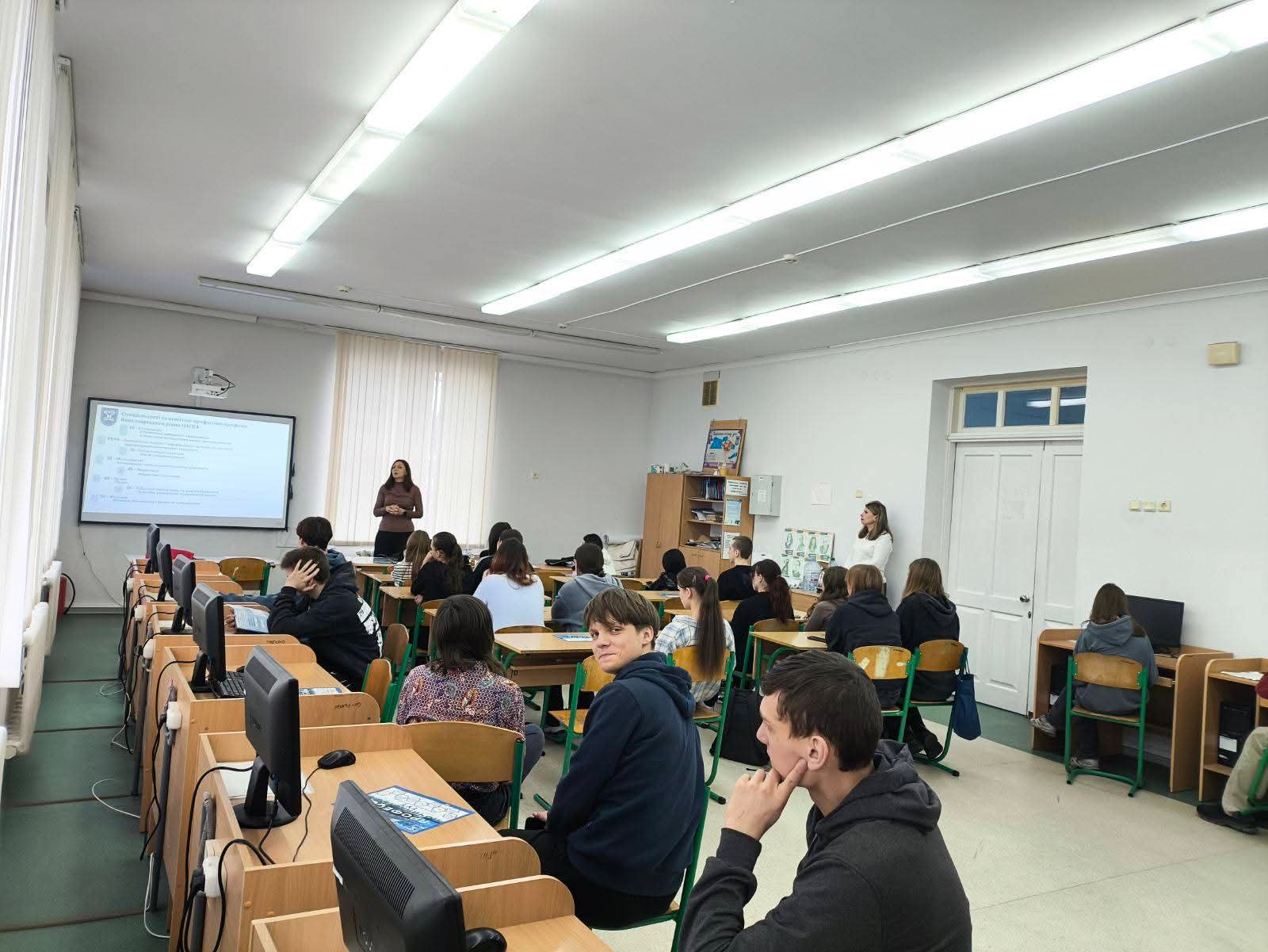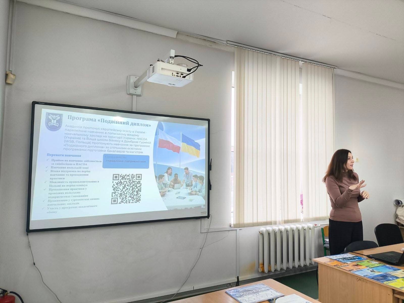 Представники Академії презентували випускникам освітні програми, поінформували про умови вступної кампанії-2026, перспективи працевлаштування в майбутньому, умови навчання та дозвілля в цілому.