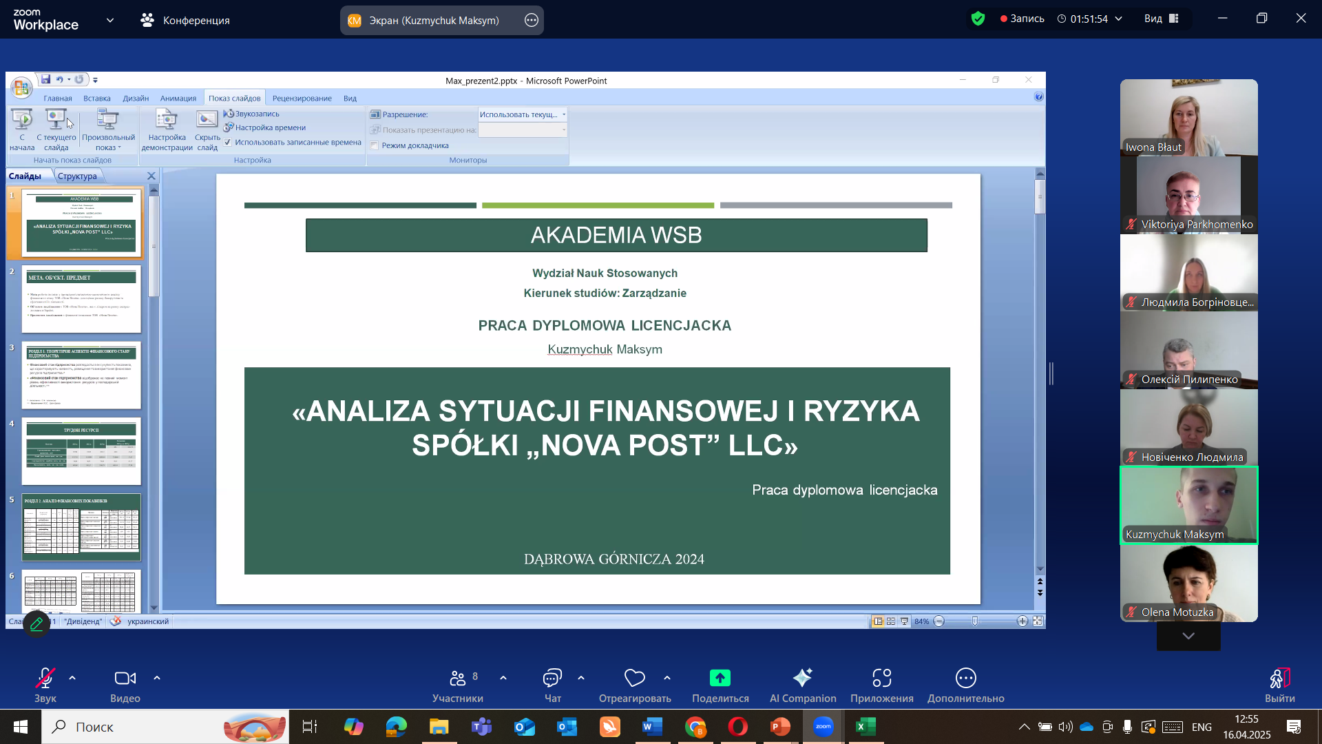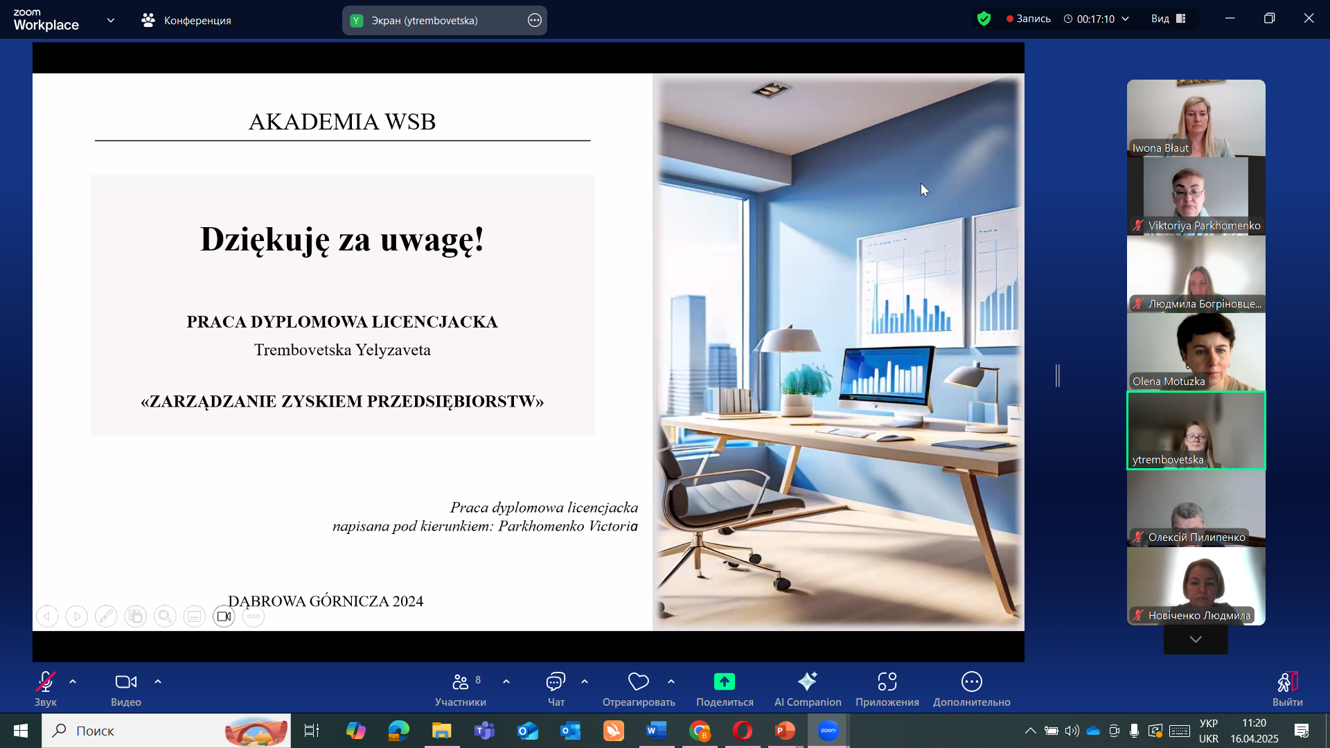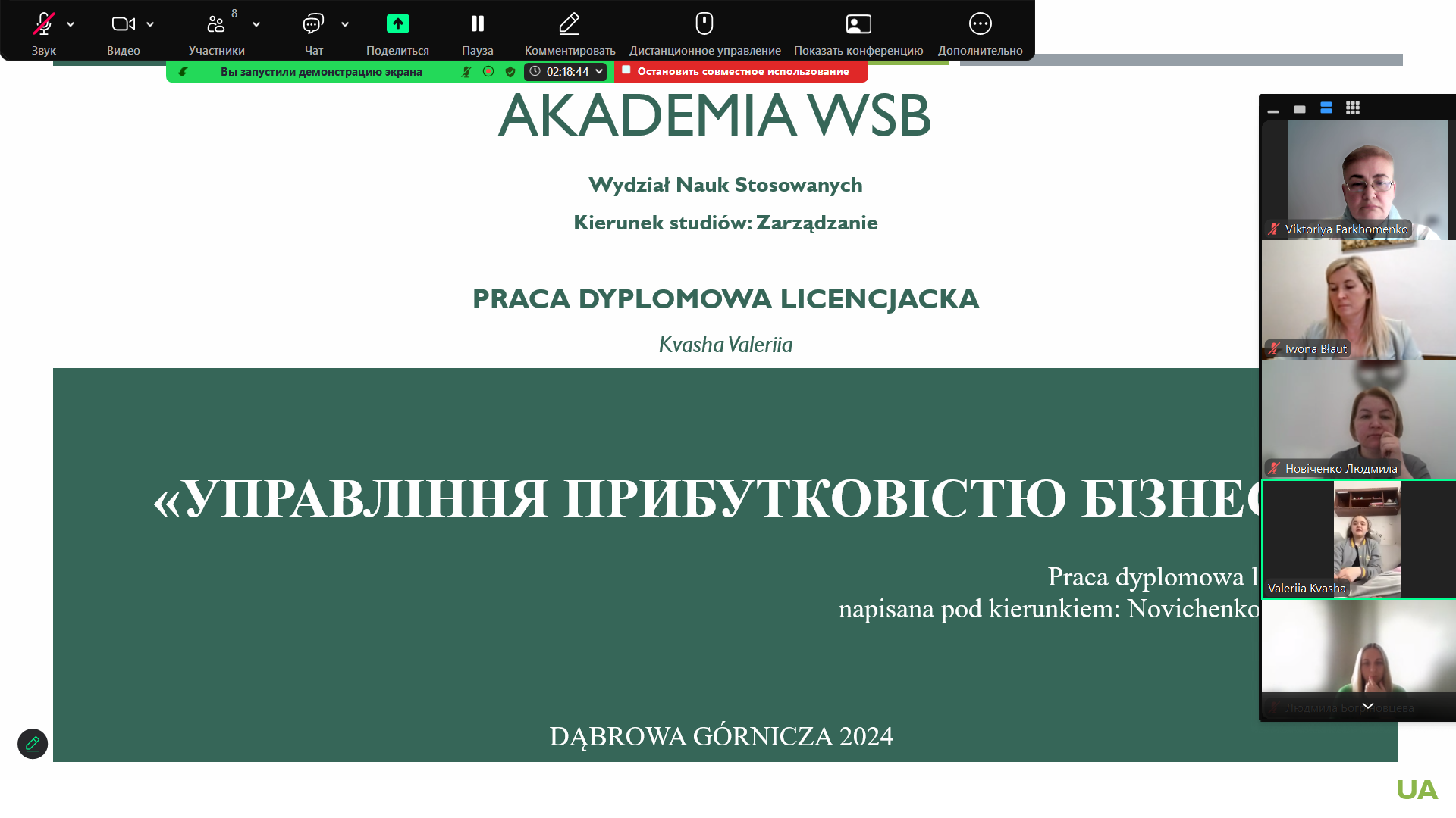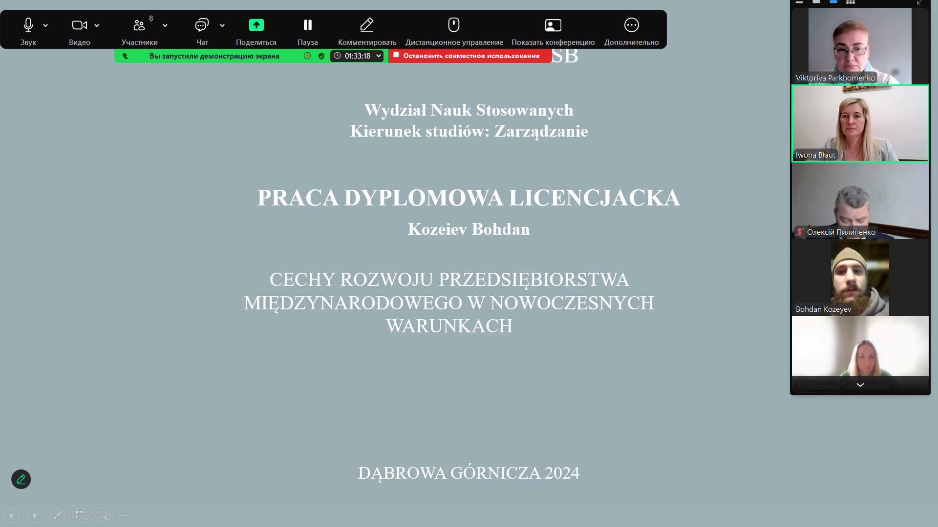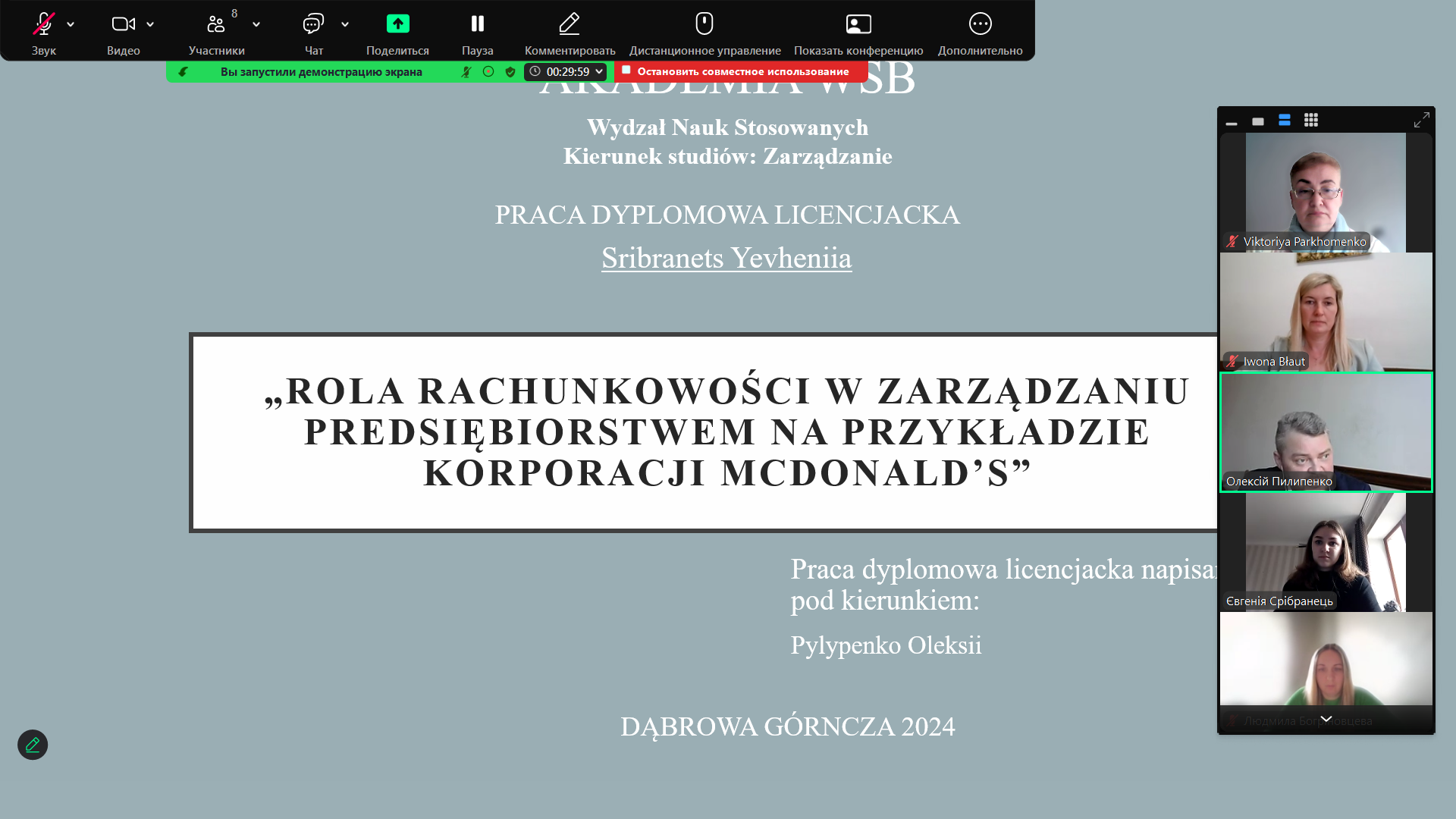 Здобувачі вищої освіти, які навчалися за програмою Подвійних дипломів у рамках угоди між Національною академією статистики, обліку та аудиту та Вищою школою бізнесу в Домброві Гурничій, успішно захистили бакалаврські роботи та незабаром отримають диплом бакалавра Республіки Польща за освітньою програмою «Zarządzanie przedsiębiorstwem».