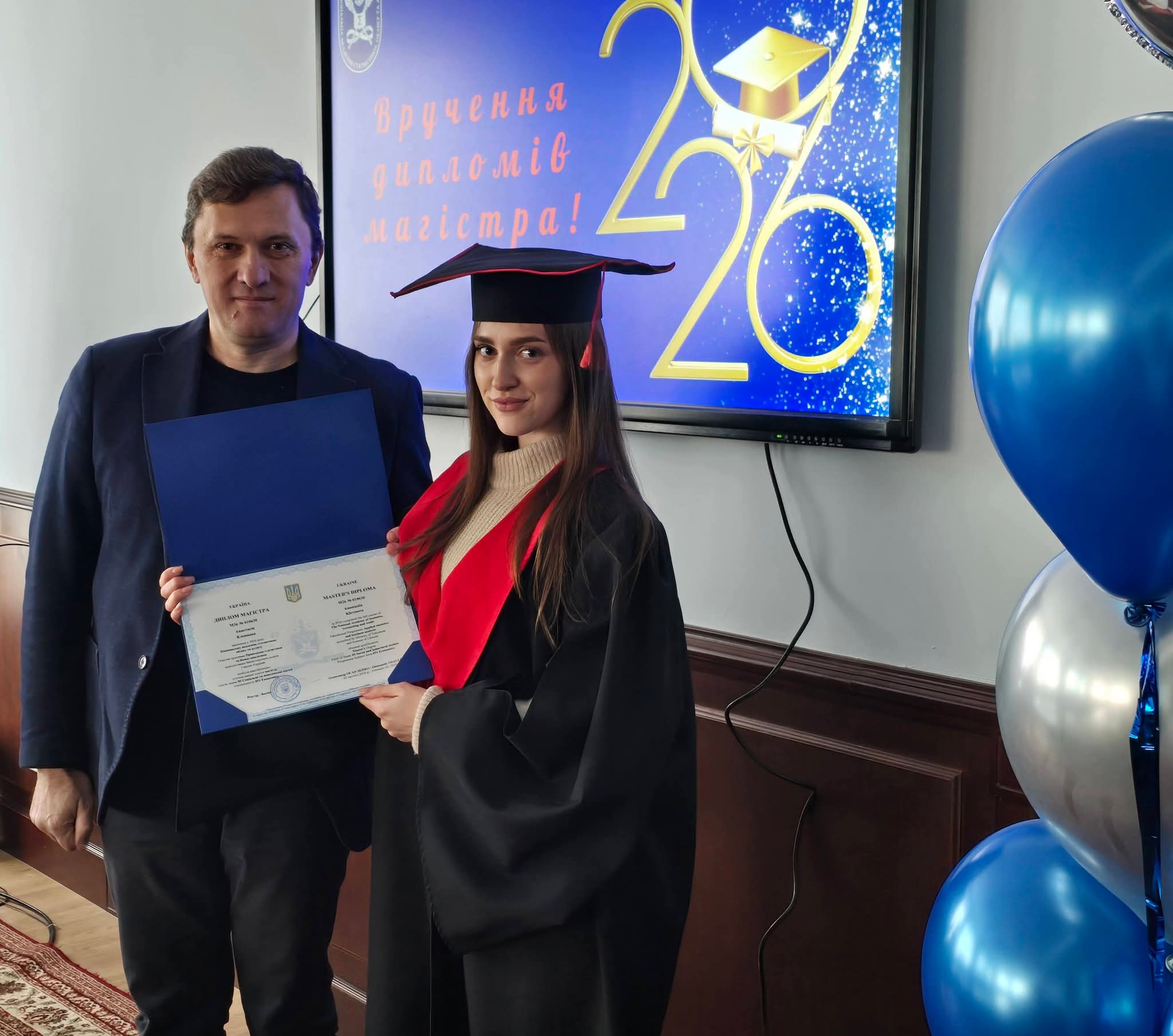 Дорогі наші магістри, ваші дипломи – це символ вашої наполегливості, інтелектуальної зрілості, професійного становлення та внутрішньої сили. За кожним дипломом – роки навчання, складні сесії, наукові дослідження, захисти, сумніви й перемоги. І сьогодні – заслужений результат.