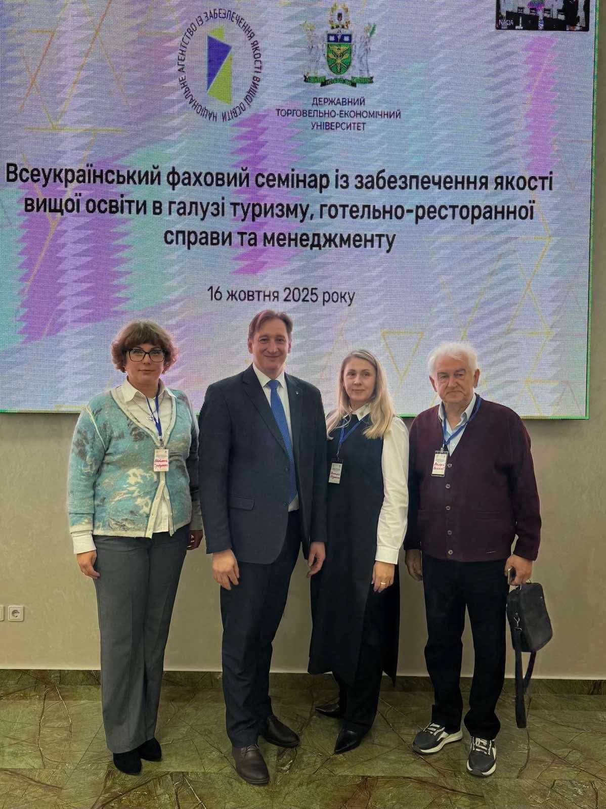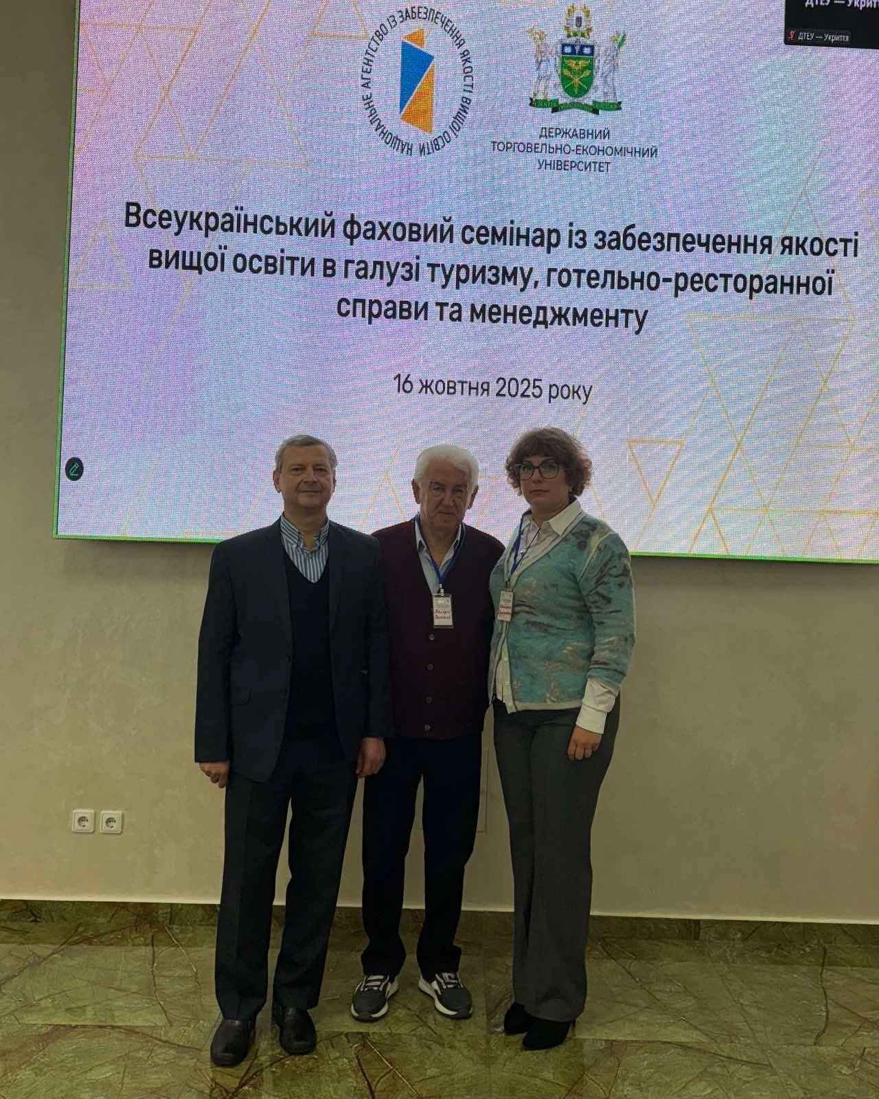 16 жовтня представники Національної академії статистики, обліку та аудиту – Супруненко С. А., к.е.н., доцент, проректор з науково-педагогічної та виховної роботи, Захожай В. Б., д.е.н., професор, завідувач науково-дослідного центру та Євтушенко Н. М., к.е.н., доцент, в.о. декана фінансово-економічного факультету, взяли участь у Всеукраїнському фаховому семінарі із забезпечення якості вищої освіти у галузі туризму, готельно-ресторанної справи та менеджменту, який відбувся у стінах Державного торговельно-економічного університету.