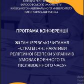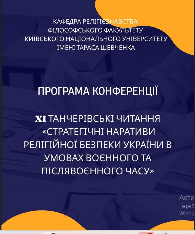 27 жовтня здобувачка першого (бакалаврського) рівня вищої освіти першого року навчання – Анастасія Ахметова та д.філософ. н., професор, завідувач кафедри філософії, права та соціального-гуманітарних дисциплін – Тетяна Гаврилюк взяли участь в щорічній науковій конференції “XI Танчерівські читання “Стратегічні наративи релігійної безпеки України в умовах воєнного та післявоєнного часу”, яку проводила кафедра релігієзнавства Київського національного університету імені Тараса Шевченка.