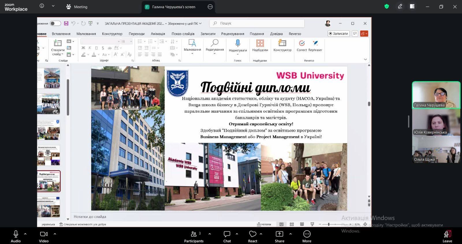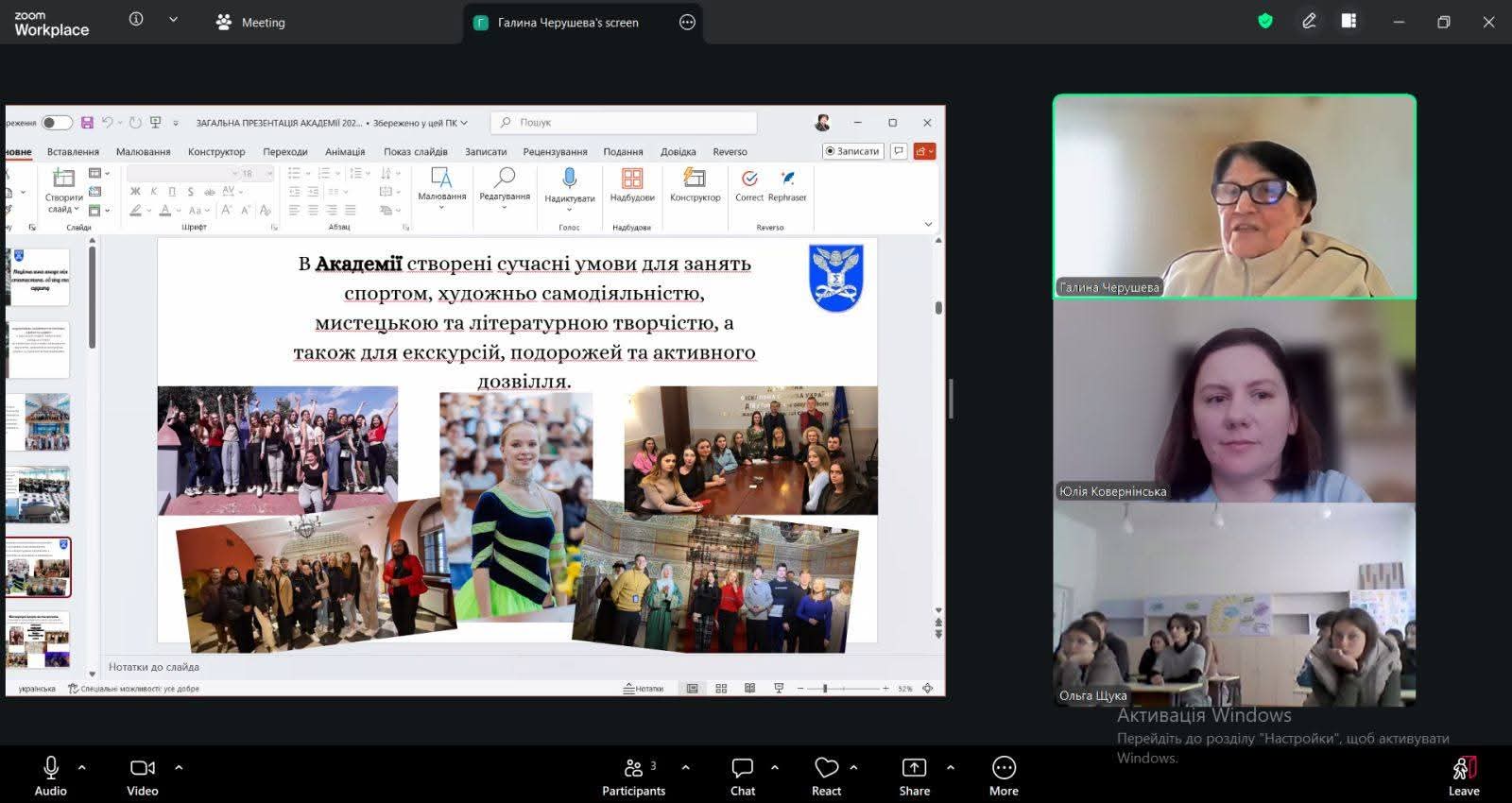 Від Академії до зустрічі приєдналися завідувач відділу профорієнтації, к.пед.н., доцент — Черушева Г.Б. та к.е.н., доцент, доцент кафедри фінансів, банківської справи та страхування – Ковернінська Ю.В.