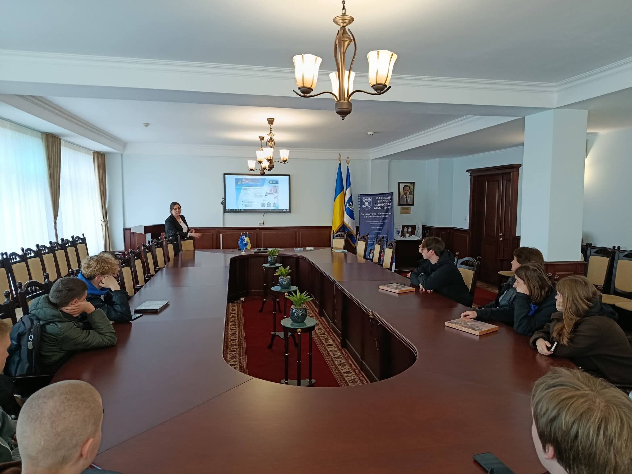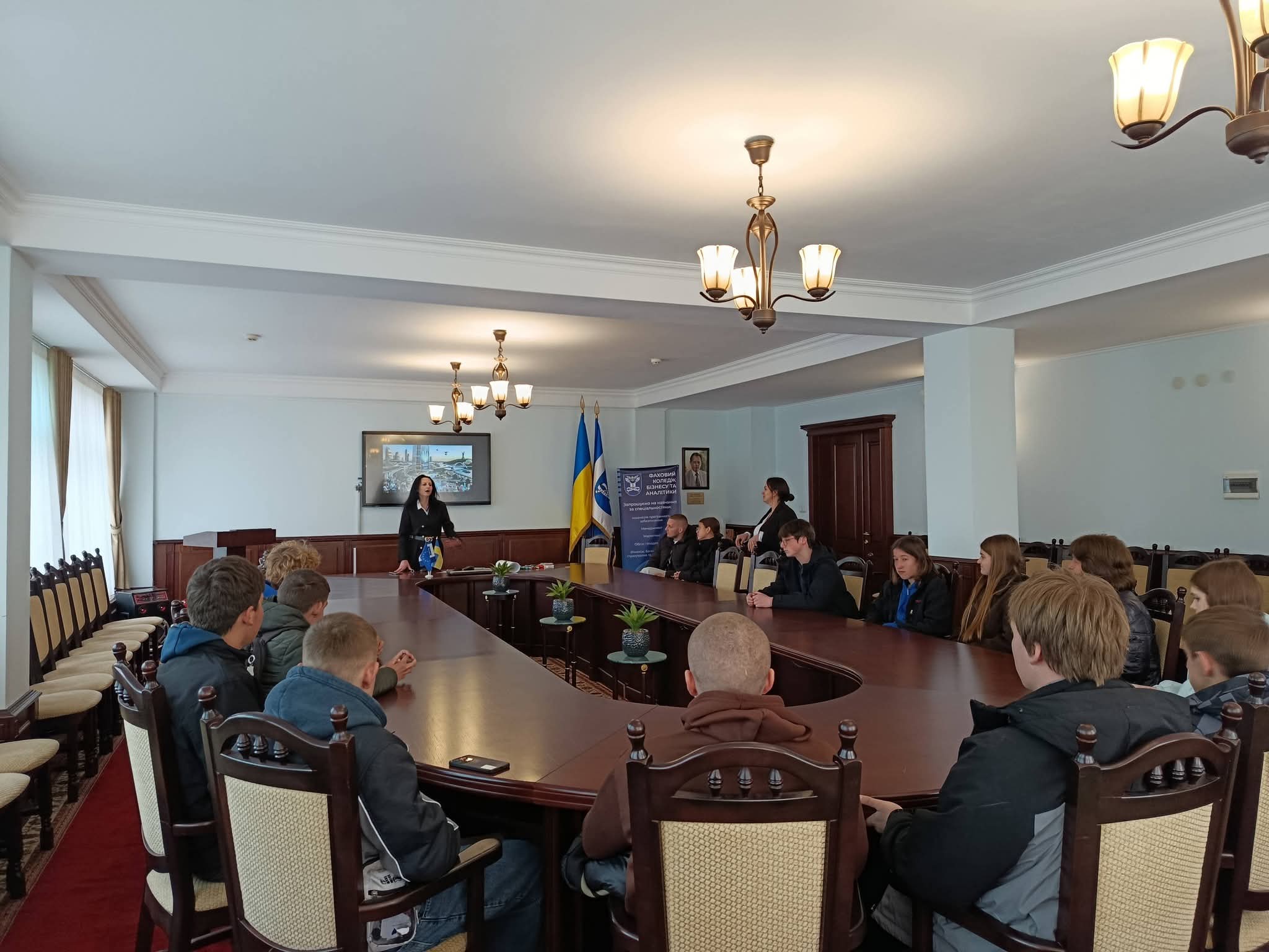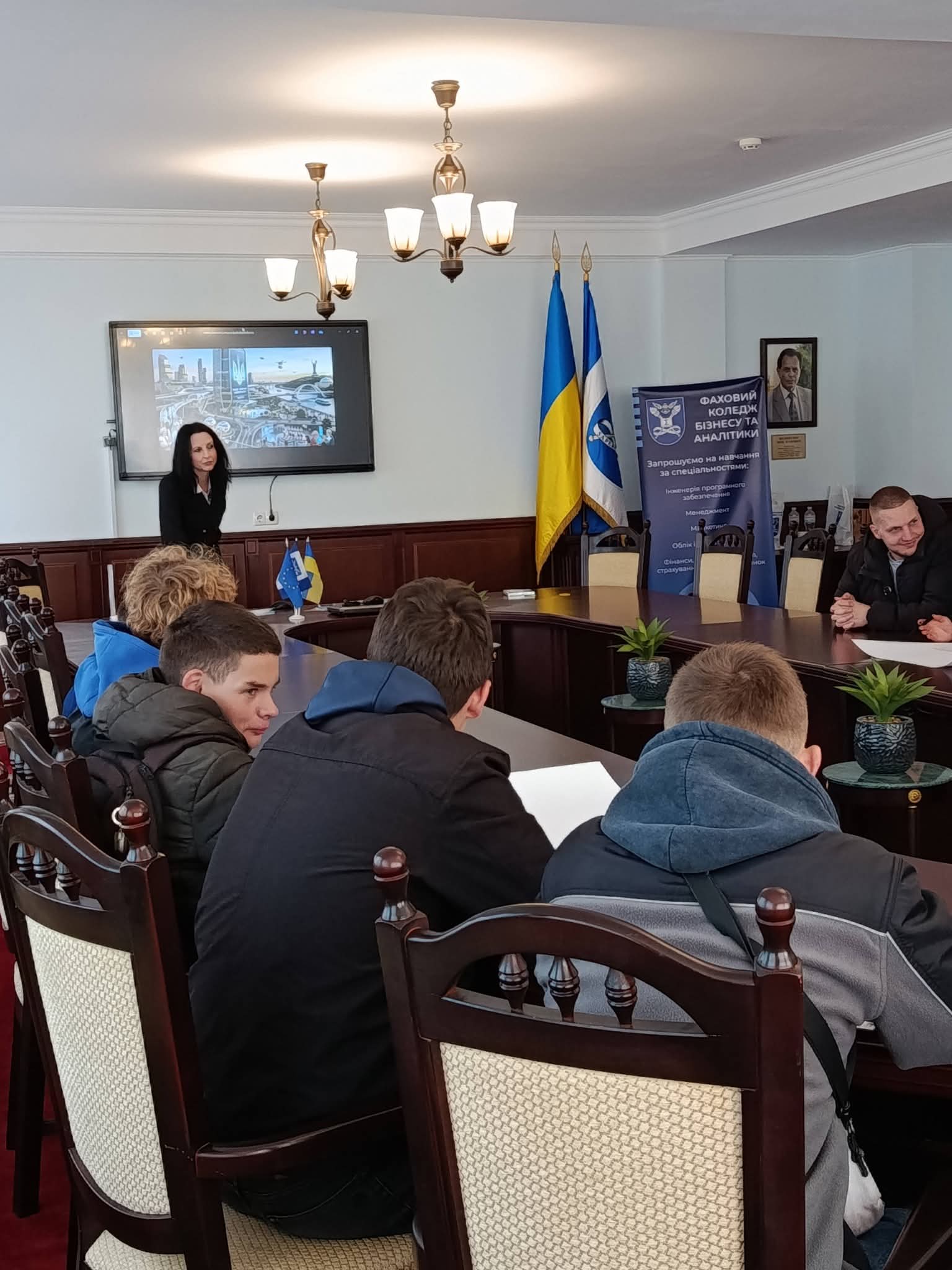Зустріч зі школярами розпочалася з інтерактиву «Майбутнє України», під час якого учні на ватманах відобразили власне бачення повоєнної України — цифровізованої, заможної та успішної держави. Після цього Свирида О.А. ознайомила учасників із освітніми програмами та перспективами вступу до філії Фахового коледжу бізнесу та аналітики на базі Слобідського ліцею Обухівської ОТГ.