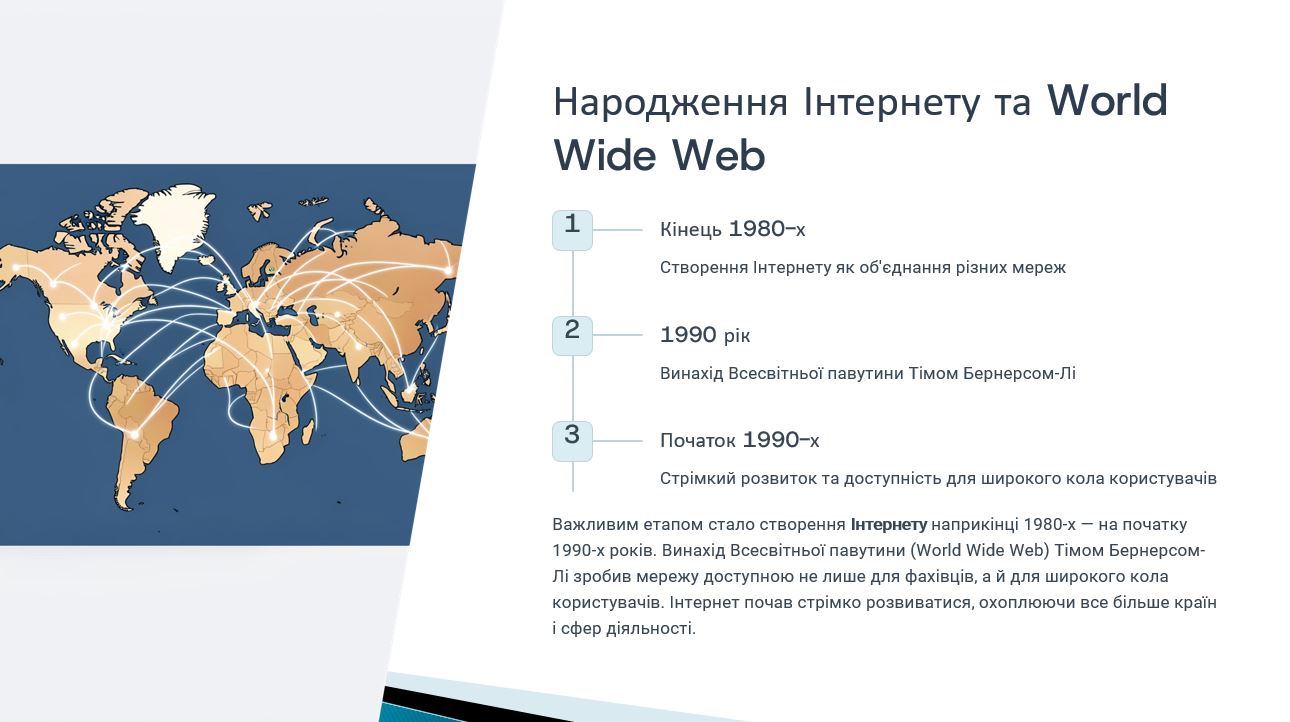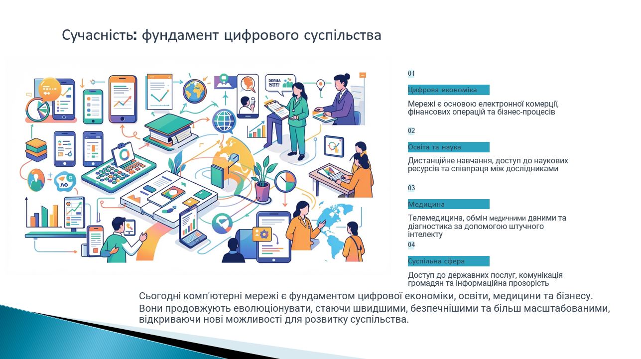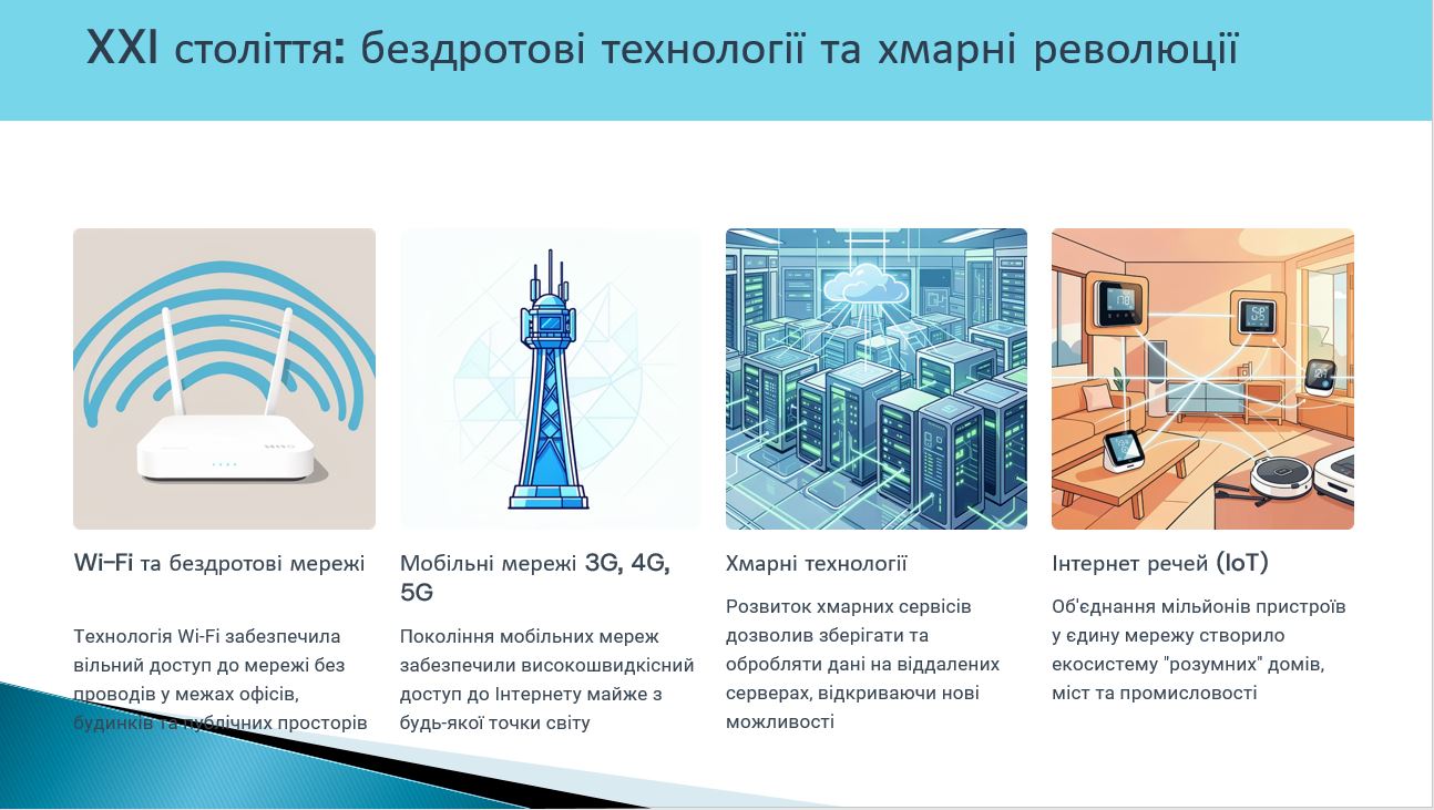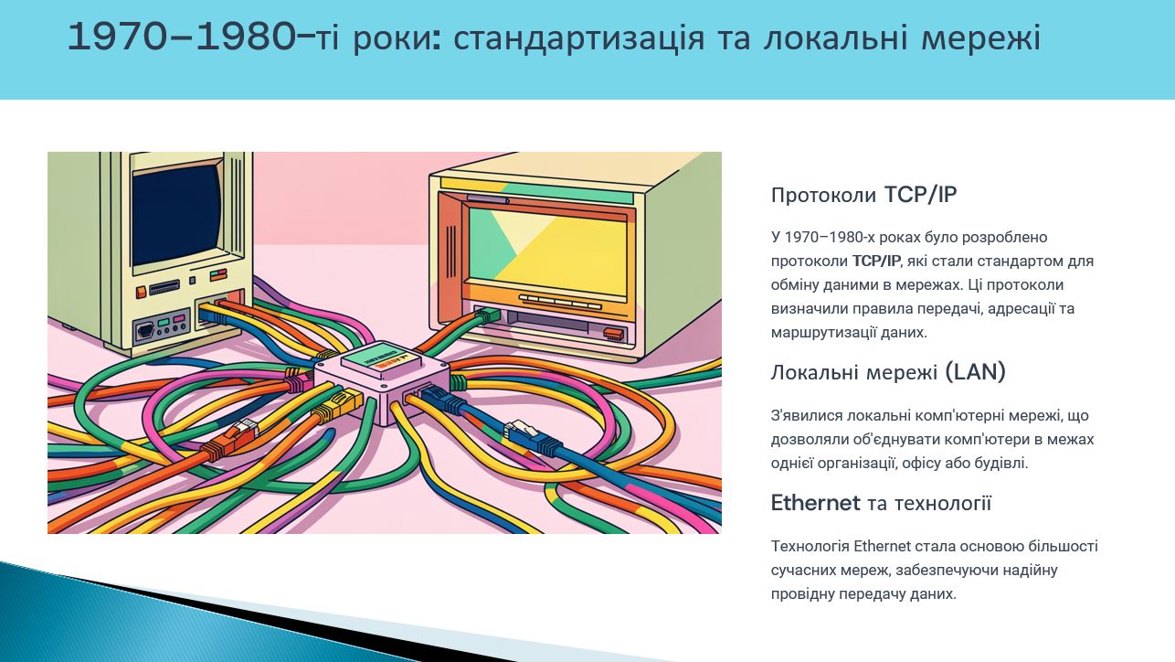 Під час засідання було розглянуто ключові етапи становлення комп’ютерних мереж – від перших експериментів з передавання даних та створення мережі ARPANET до формування глобальної мережі Інтернет і сучасних високошвидкісних мережевих технологій. Особливу увагу було приділено еволюції мережевих протоколів, архітектурі клієнт–сервер, розвитку локальних та глобальних мереж, а також ролі хмарних технологій і бездротових мереж у сучасному цифровому світі.