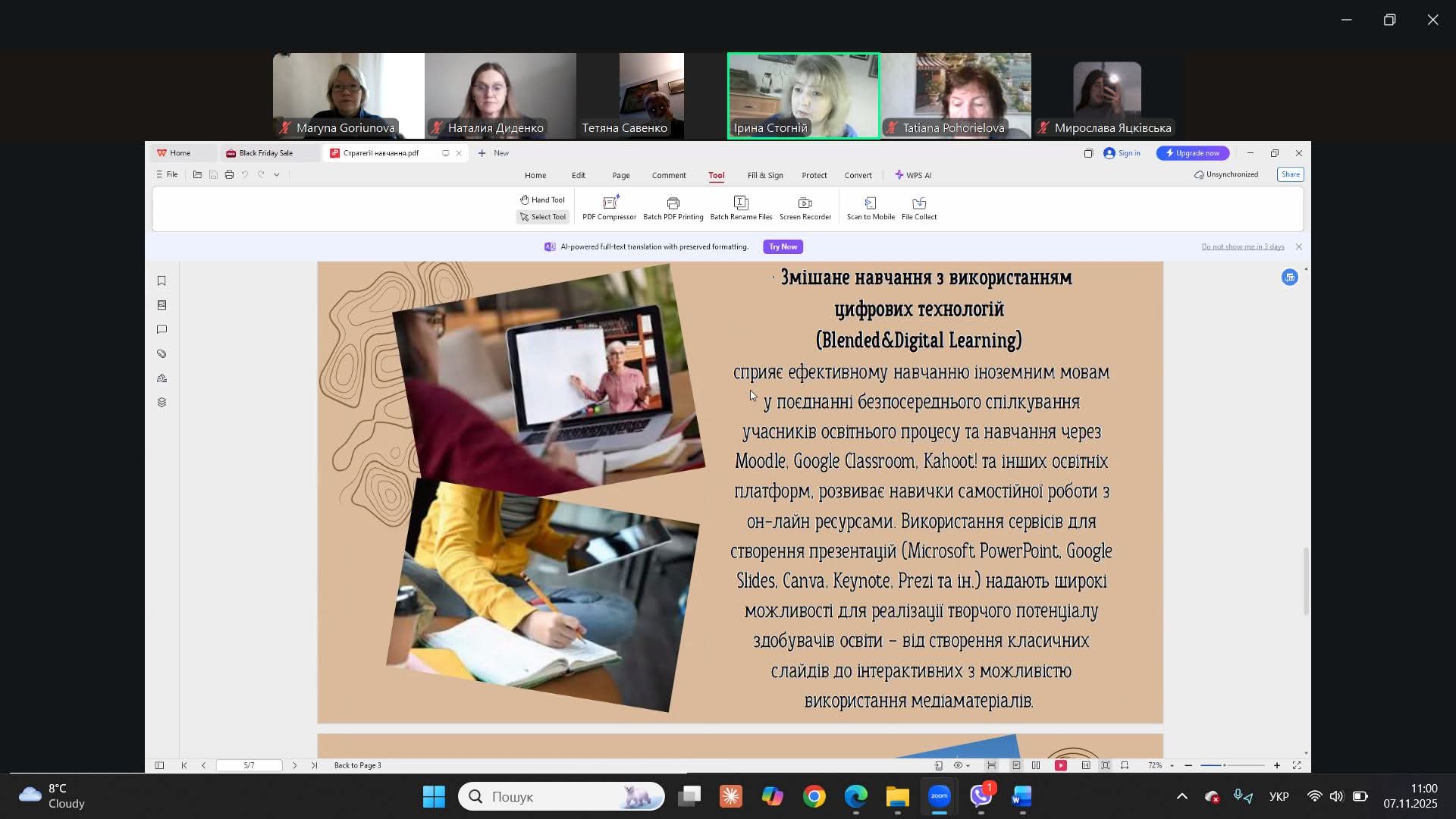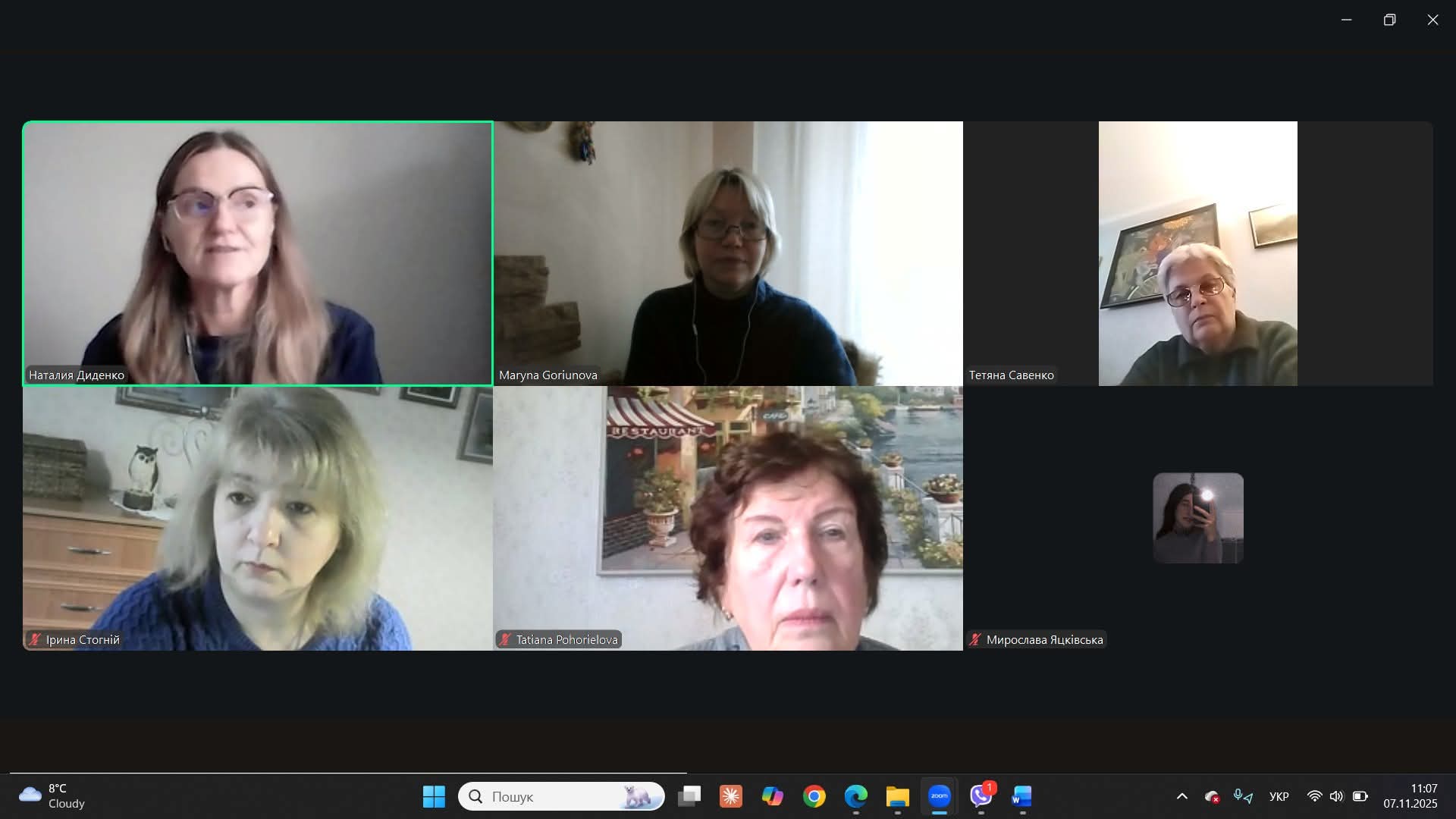 Науково-педагогічні працівники кафедри іноземних мов: к.філол.н., доц., завідувач кафедри М.М. Горюнова, к.пед.н., доц. Н.М. Діденко, к.філол.н., доц. Т.Д. Савенко, ст. викл. Т.Ф. Погорєлова взяли участь у дискусії, обговорили актуальні питання та поділилися своїм досвідом запровадження сучасних інноваційних стратегій у навчальний процес.