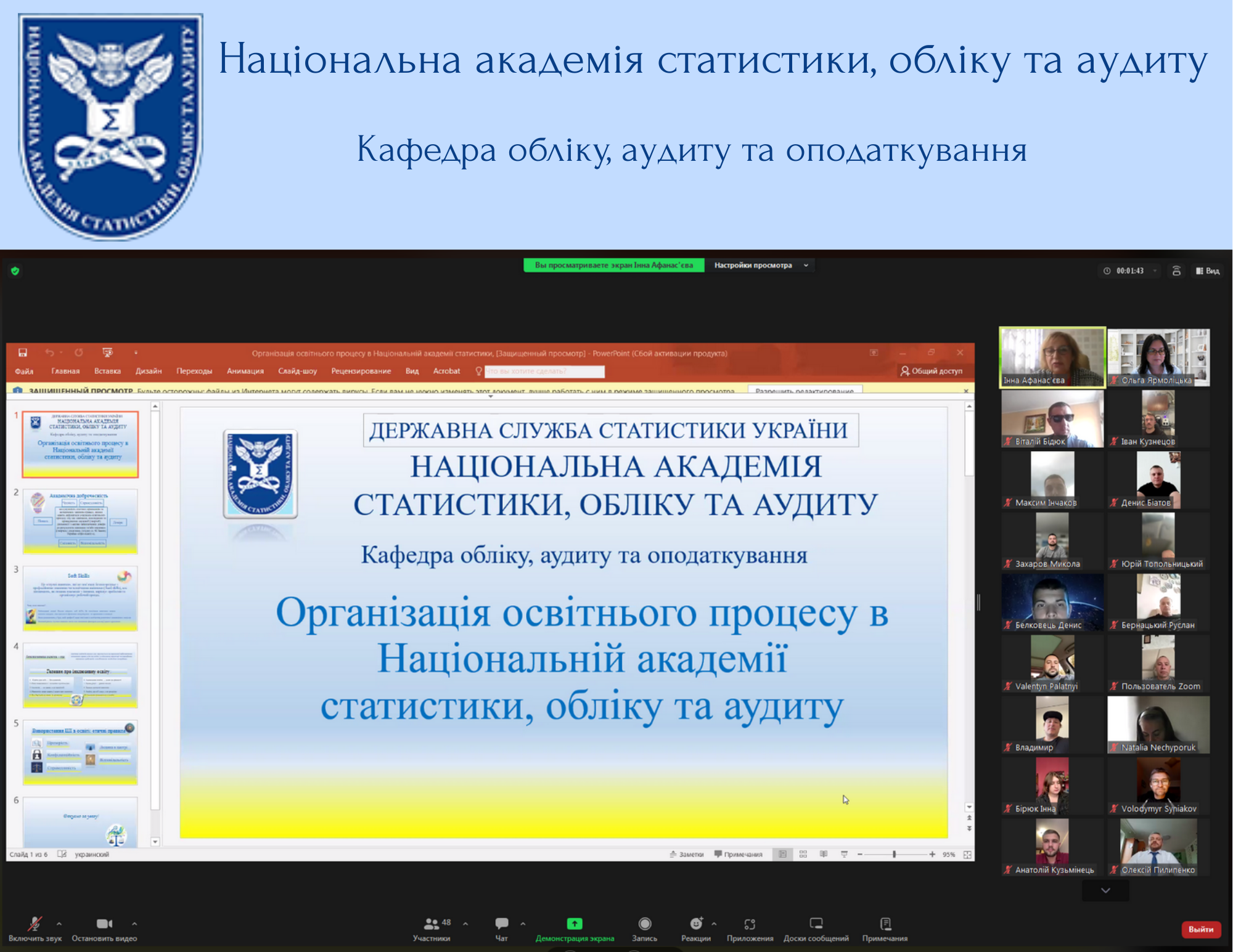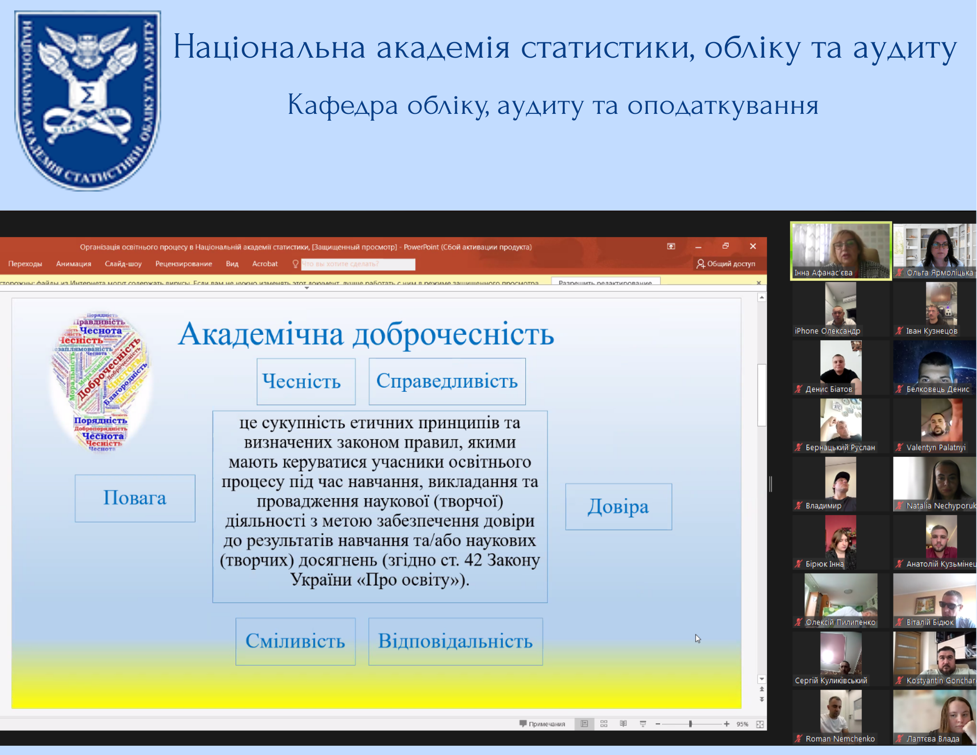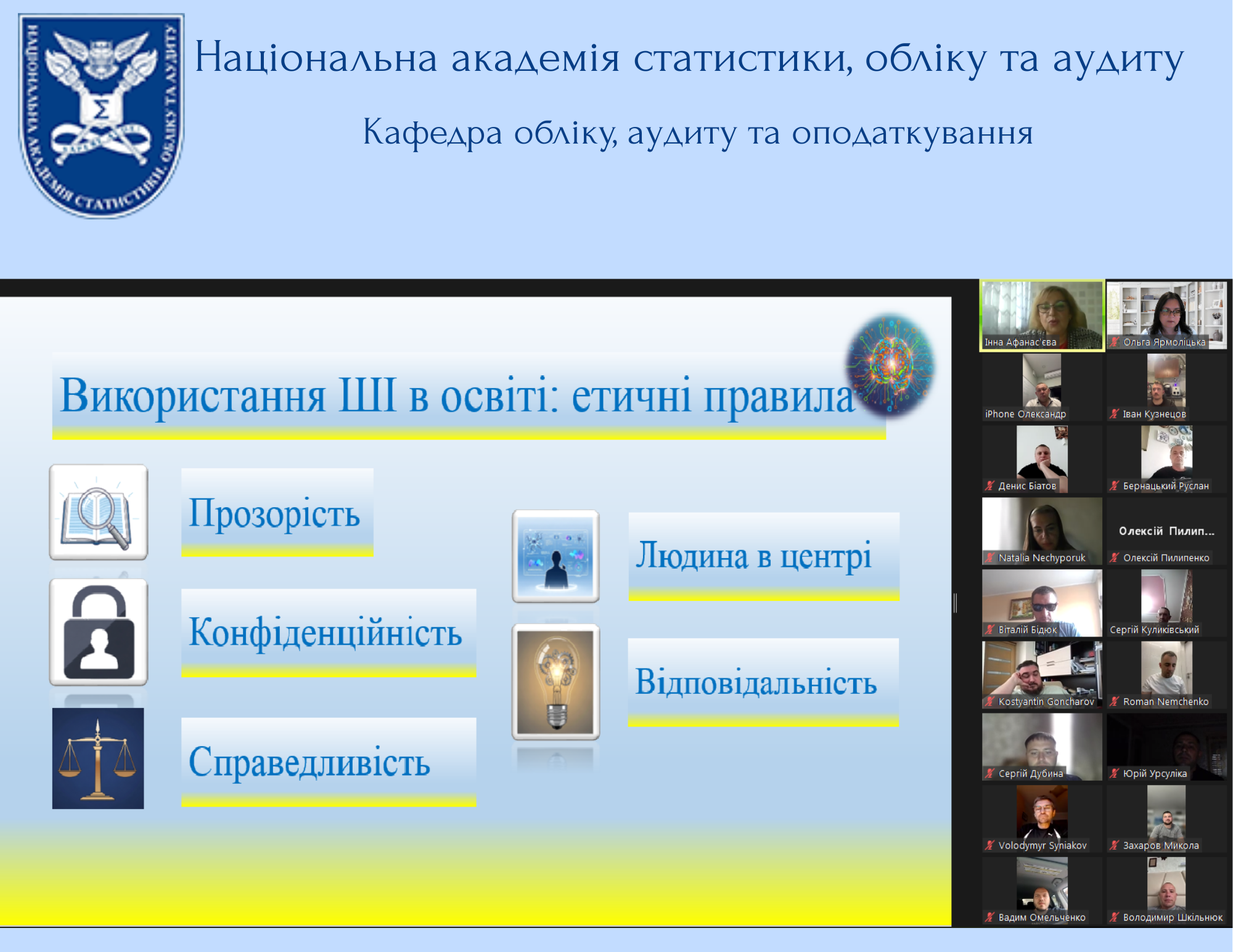 Кафедра обліку, аудиту та оподаткування Національної академії статистики, обліку та аудиту провела важливий захід з організації освітнього процесу! До зустрічі долучилися декан факультету професор Пилипенко О. І., здобувачі вищої освіти та куратори академічних груп. Завідувач кафедри к.е.н., доцент Афанас’єва І. І. ознайомила здобувачів з особливостями освітнього процесу 2025-2026 навчального року, графіком навчального процесу.